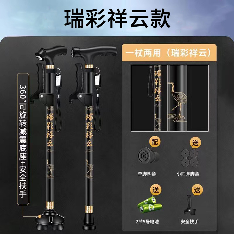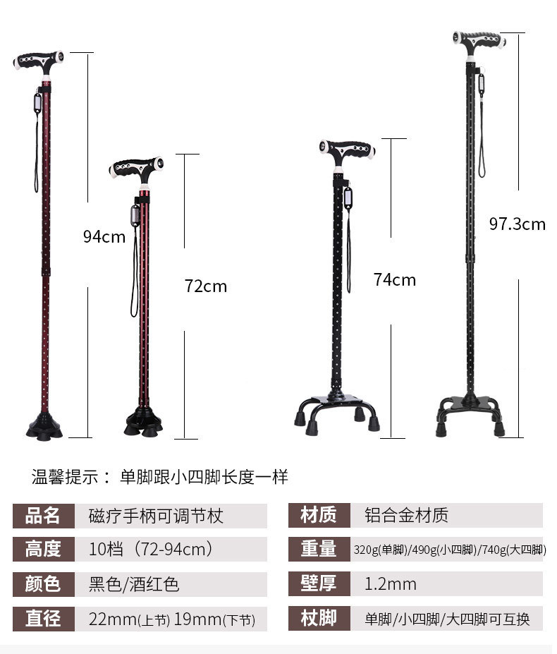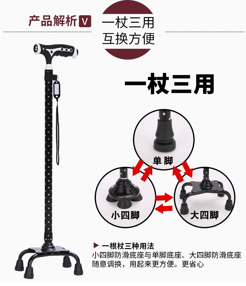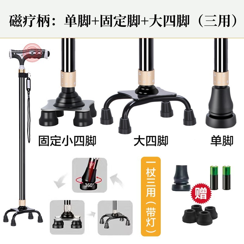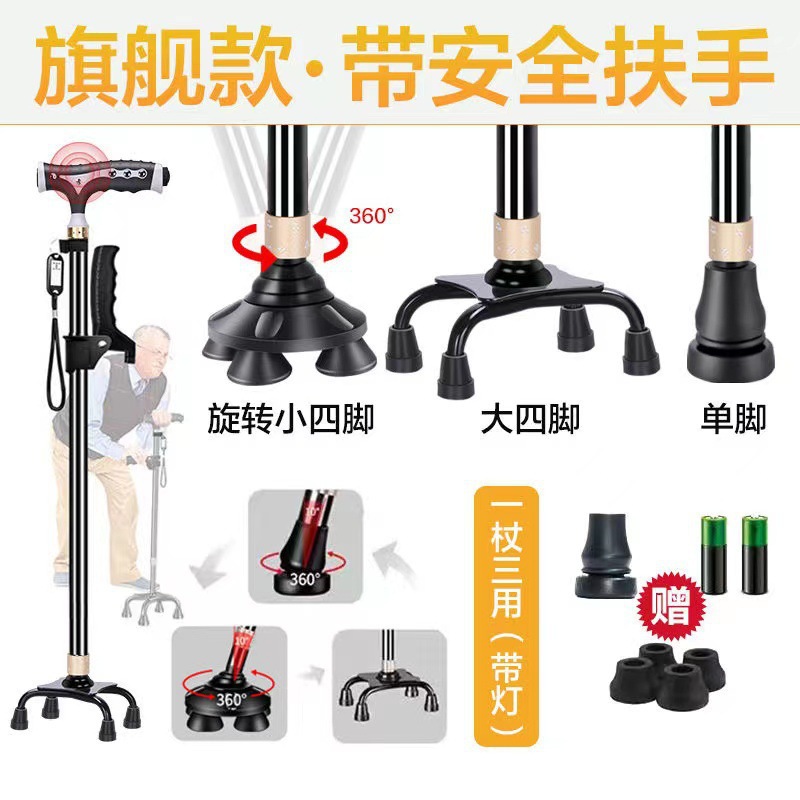노인 목발 안티 가을 미끄럼 방지 목발 지팡이 의료용 4 개 지팡이 다기능 망원경 경량 알루미늄 합금 도매