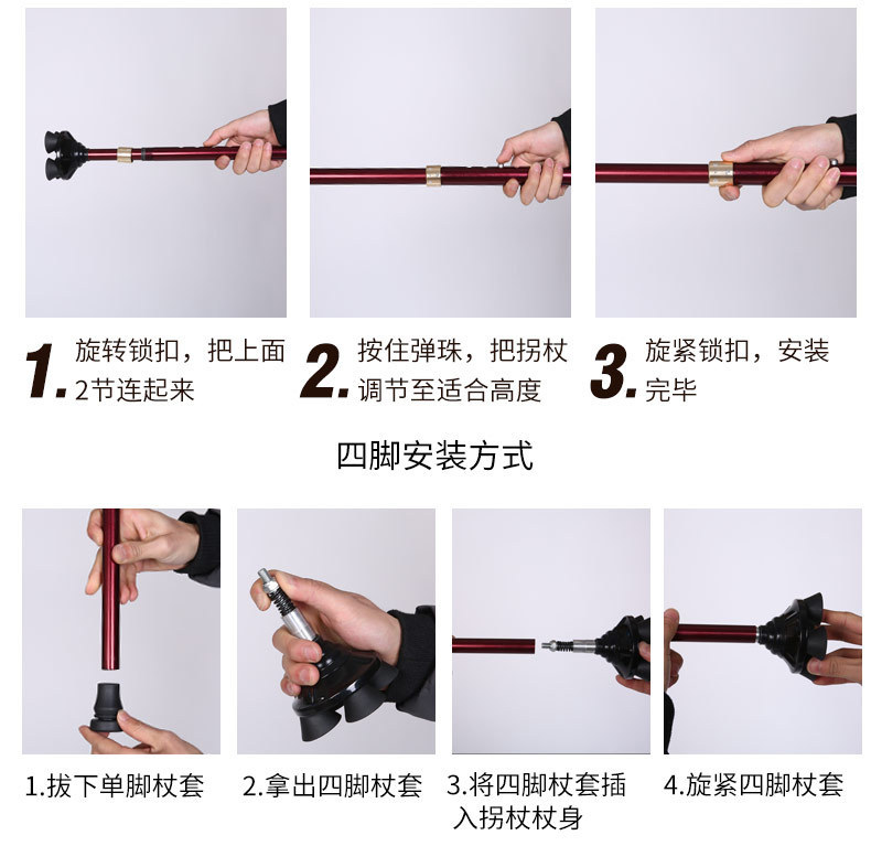 노인 목발 안티 가을 미끄럼 방지 목발 지팡이 의료용 4 개 지팡이 다기능 망원경 경량 알루미늄 합금 도매스토어 가기