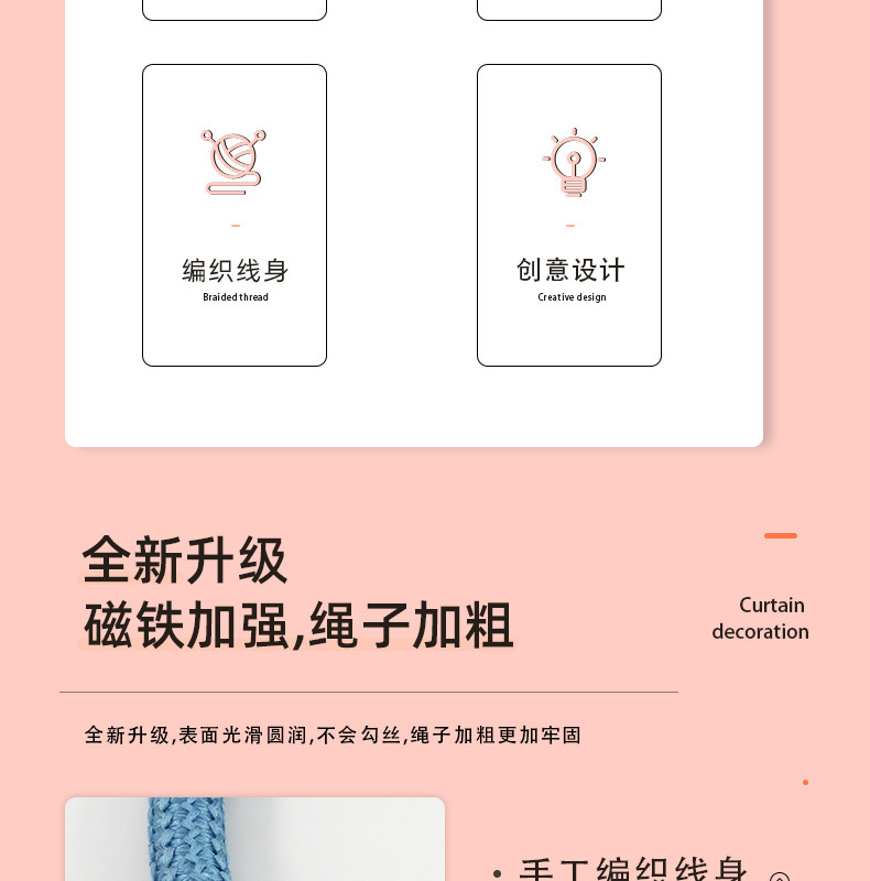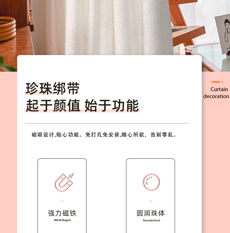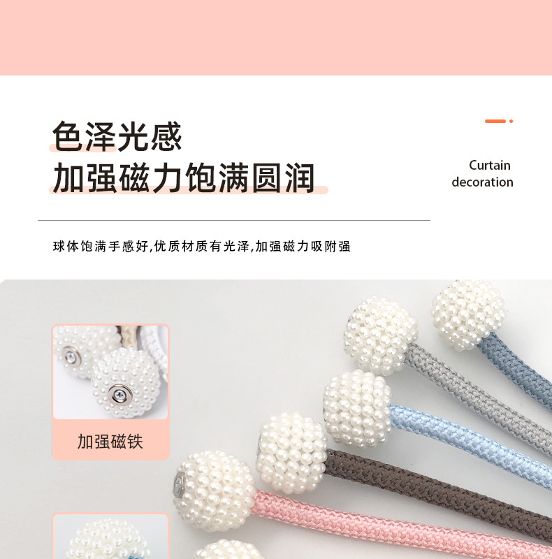 커튼 스트랩 창조적 인 강한 자기 진주 커튼 버클 펀치 프리 스트랩 스트랩 스트랩 윈도우 스크린 커튼 활 자기 버클스토어 가기