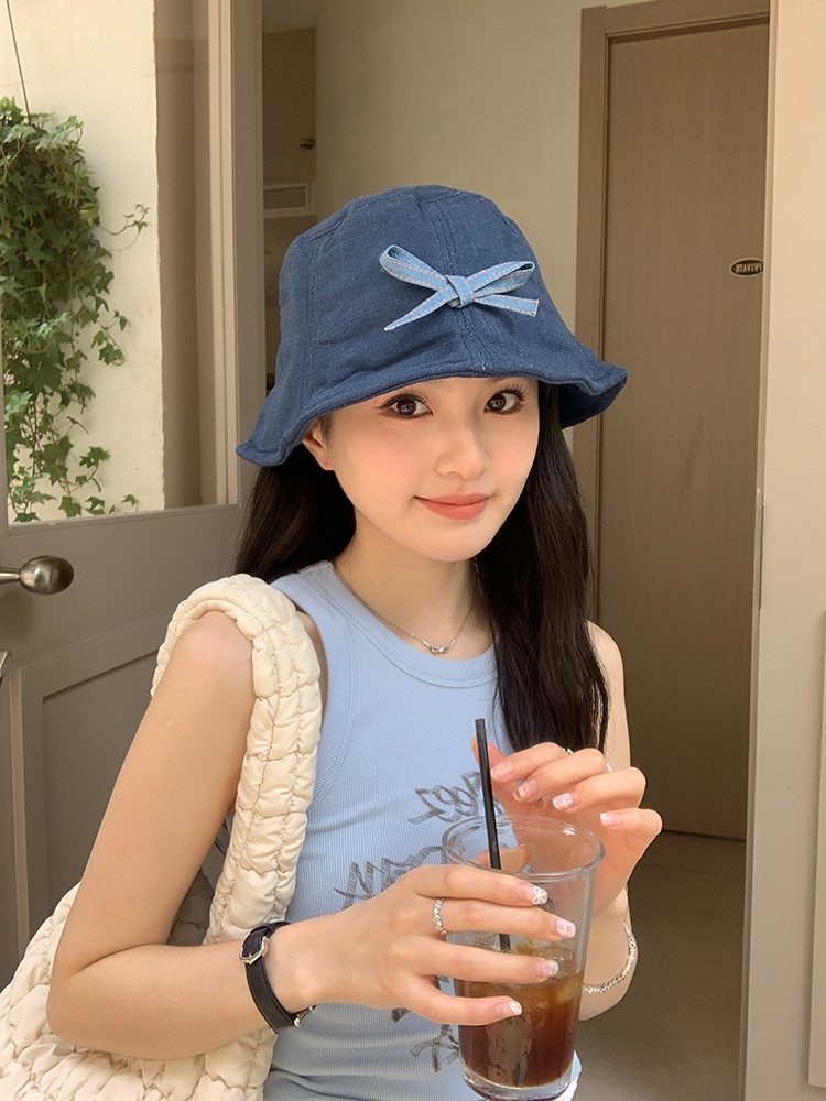 여름 한국식 in bowknot 데님 어부 모자 모자 어린이 얼굴 작은 자외선 자외선 자외선 자외선 모자스토어 가기