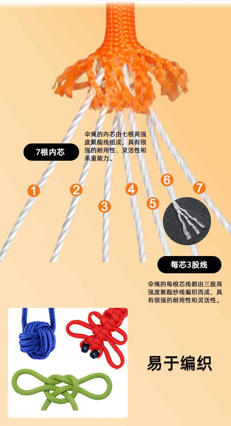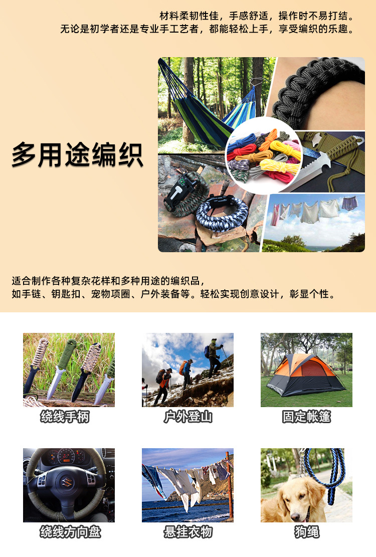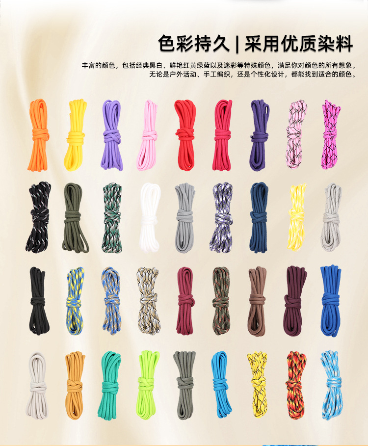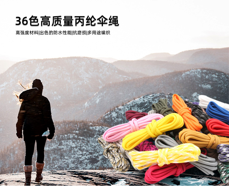 국경을 넘어 인기 있는 야외용 다기능 폴리프로필렌 로프, 7심 로프, 컬러풀한 파라코드, 손으로 짠 로프스토어 가기