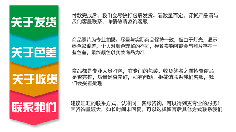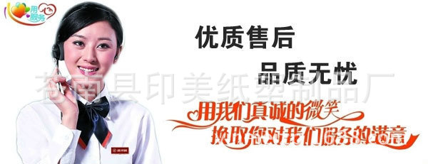 2、关于货款:尊敬的顾客,您好!印美纸塑制品厂是不支付货到付款的,所有客户,款到发货,如给您带来不便,敬请谅解。亲们可能会问为什么别的商家可以货到付款,亲,因为是这样的,我在这里跟您解释一下,亲们货到付款是先把货款给物流公司的,但是大部分物流公司是要隔1-2个月才会把亲们的货款给我的。所以还希望亲们能够理解。当然亲们可能会担心亲们打款给我们后,我不给你发货。亲们请放心好了,我们是诚信商家,骗你一次骗几百块钱我也发不了财,我们想要做的是长久生意。
