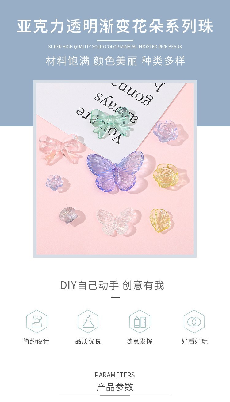 아크릴 투명 그라디언트 나비 5 꽃잎 꽃 머리 장식품 장식 액세서리 DIY 팔찌 목걸이 수제 소재스토어 가기