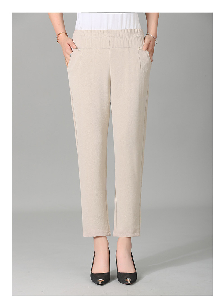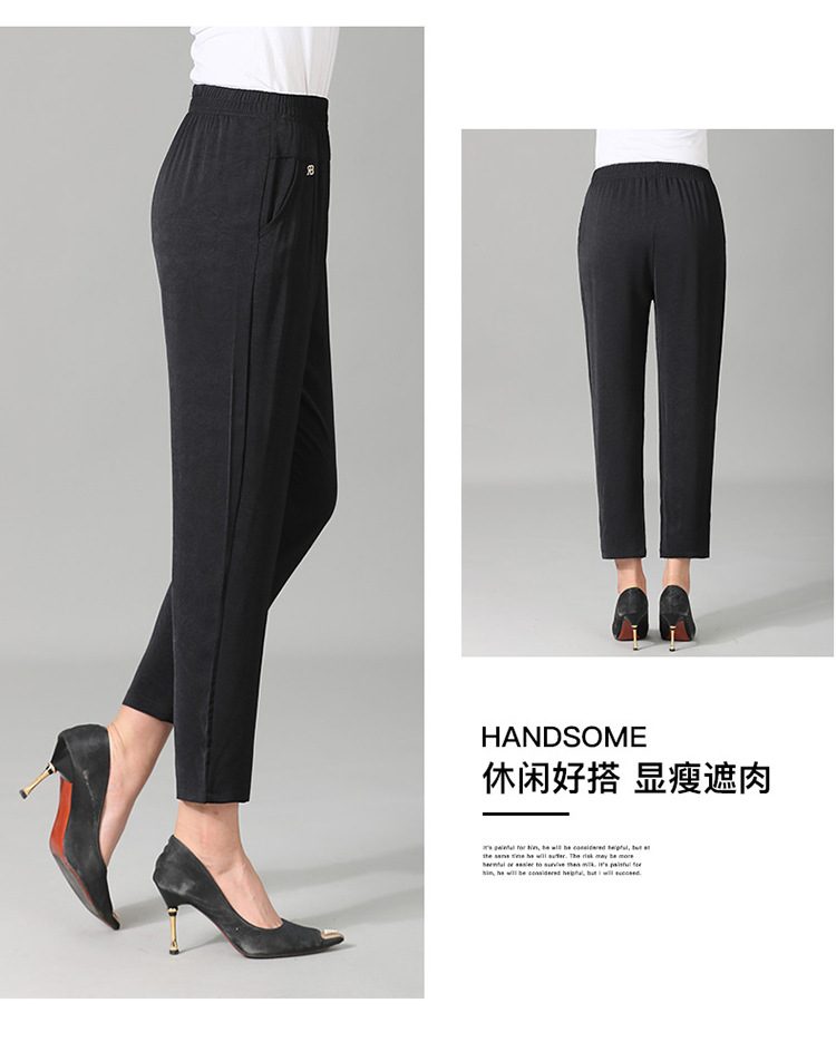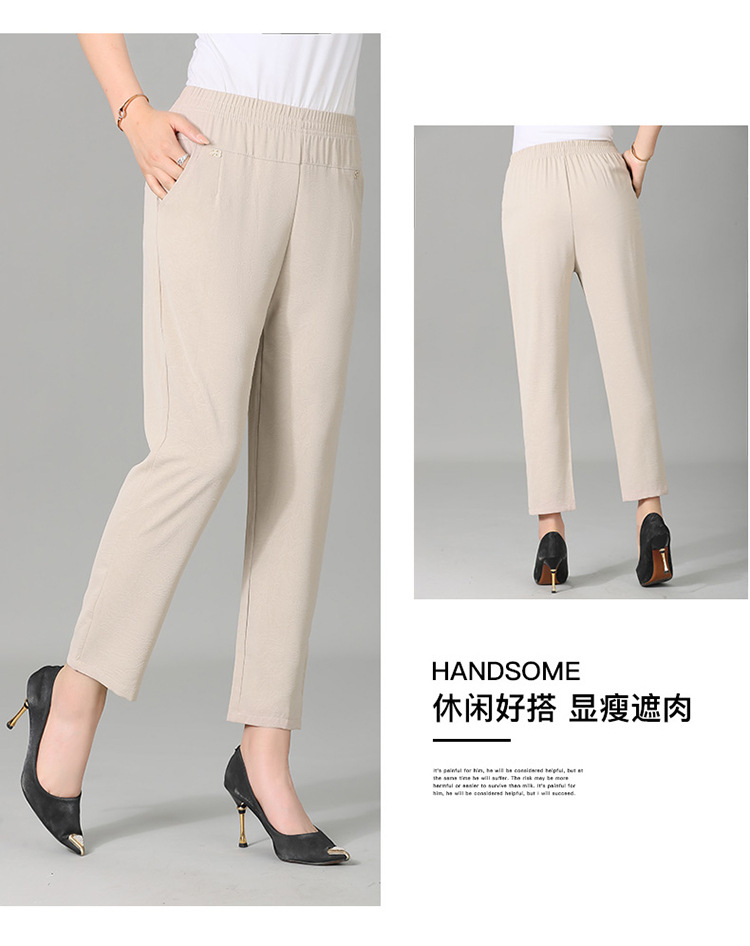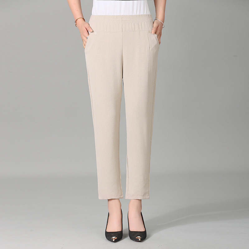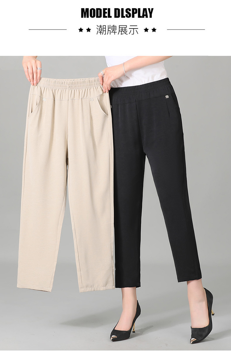 엄마의 바지 캐주얼 올 매치 여름 얇은 9 길이 바지 느슨한 아이스 실크 중년 및 노인을위한 여성용 바지