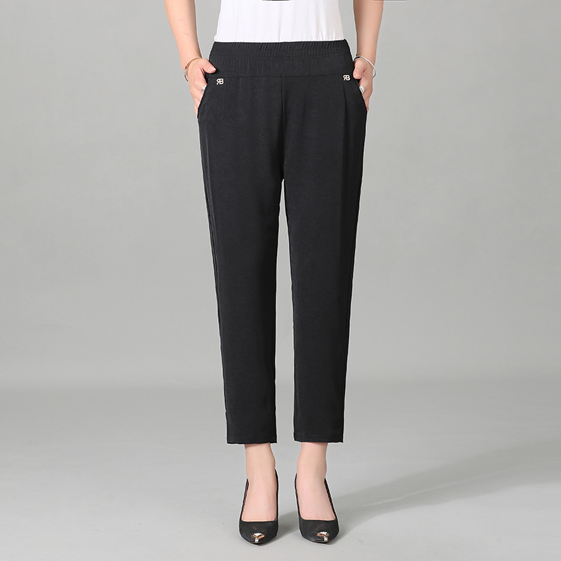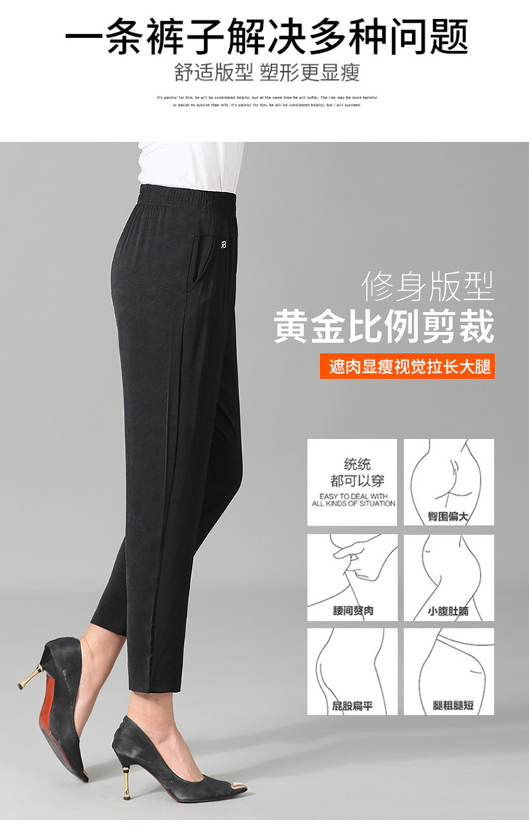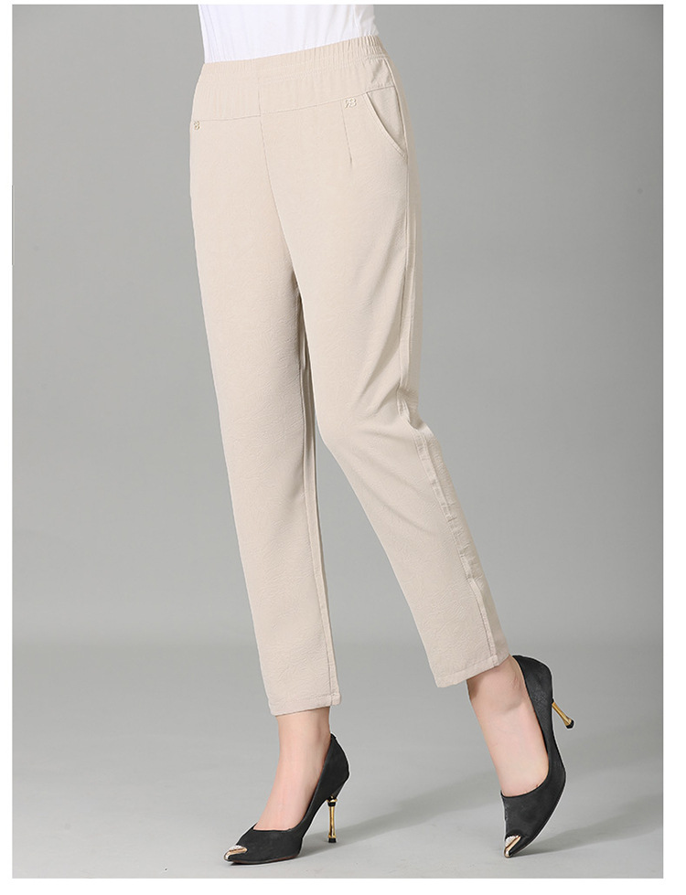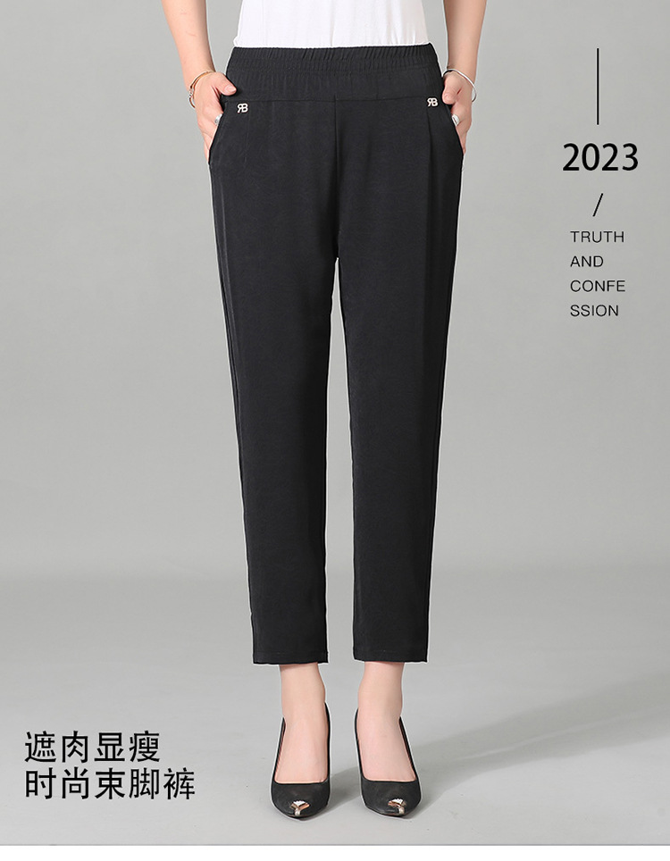 엄마의 바지 캐주얼 올 매치 여름 얇은 9 길이 바지 느슨한 아이스 실크 중년 및 노인을위한 여성용 바지