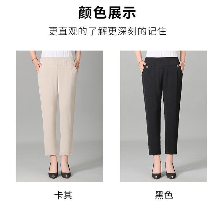 엄마의 바지 캐주얼 올 매치 여름 얇은 9 길이 바지 느슨한 아이스 실크 중년 및 노인을위한 여성용 바지스토어 가기