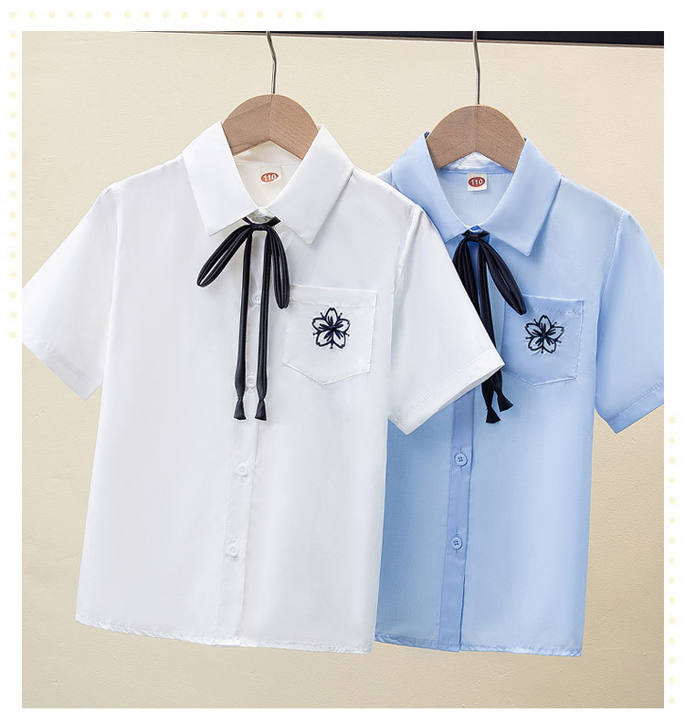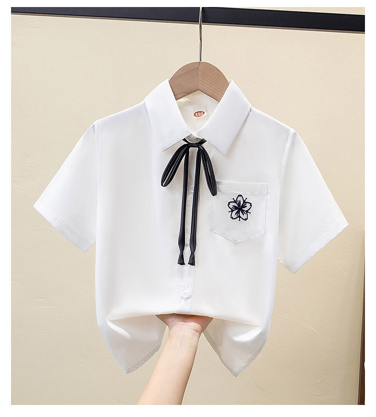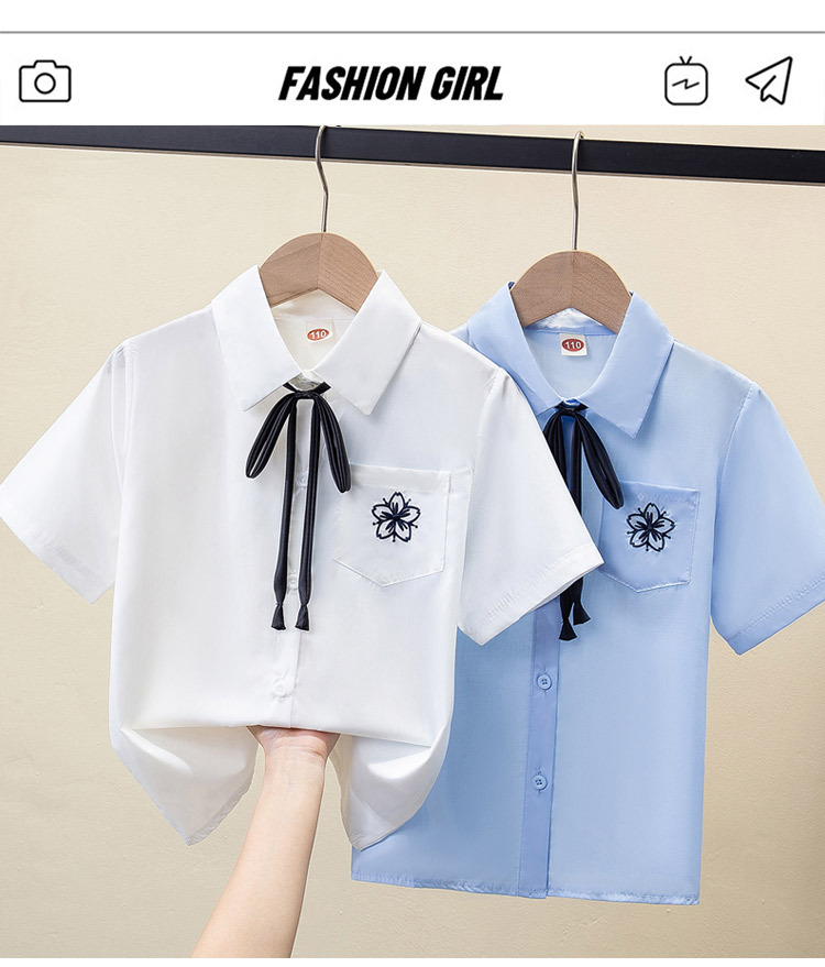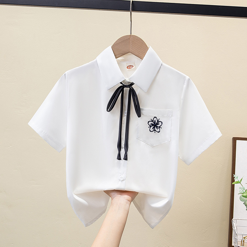 대외 무역 아동 의류 소녀 셔츠 2025 여름 새로운 스타일 중대형 어린이 여름 순수 면화 반팔 셔츠 탑 국경