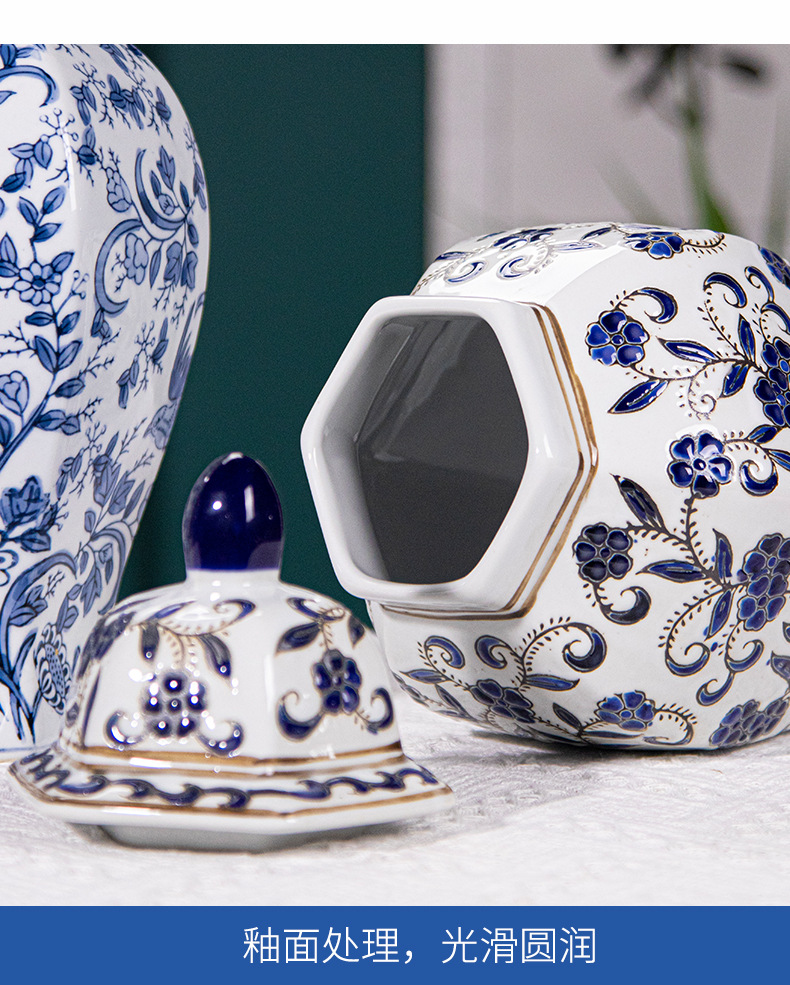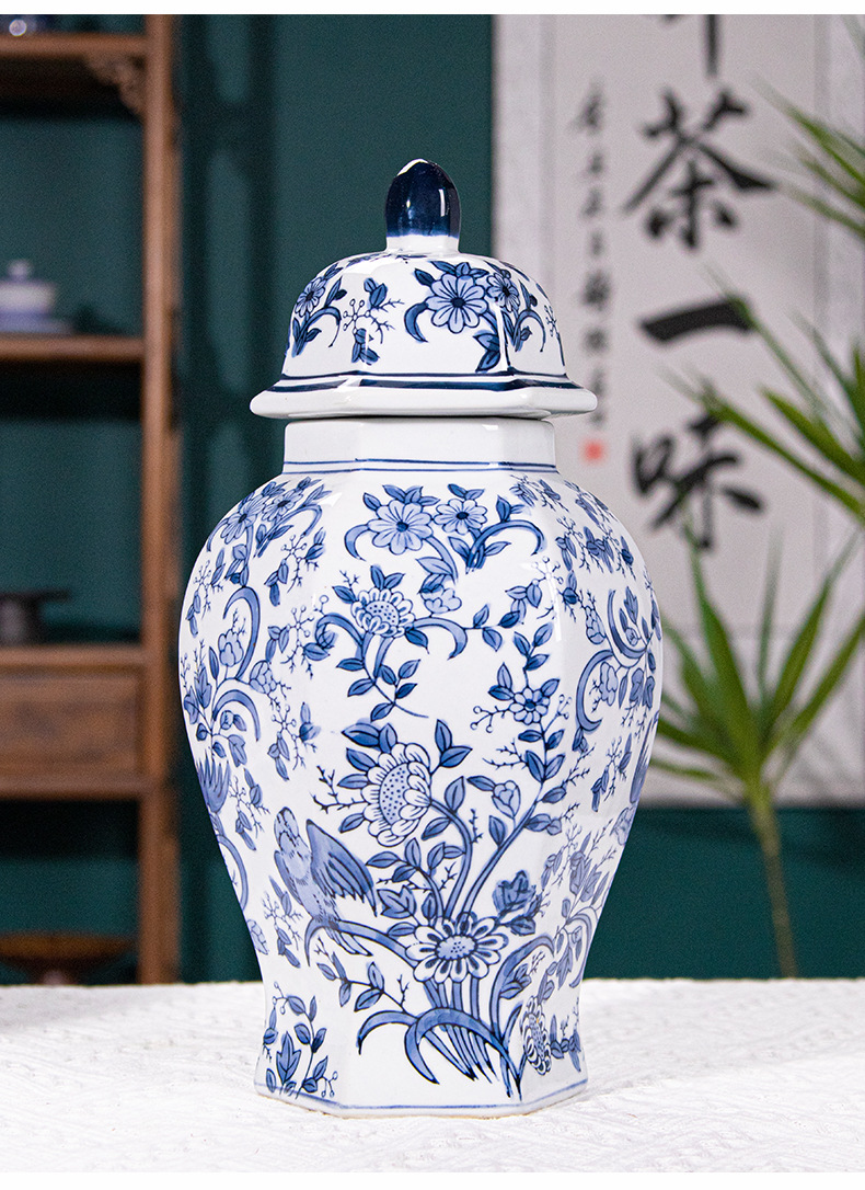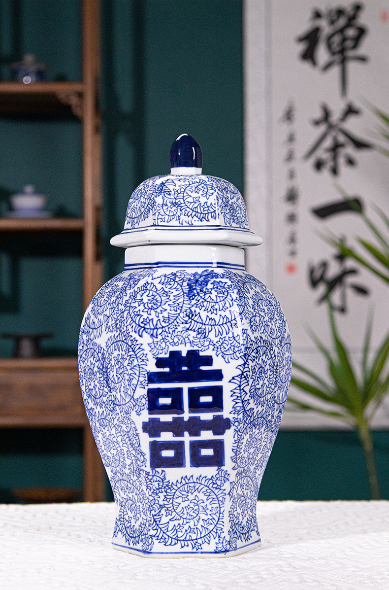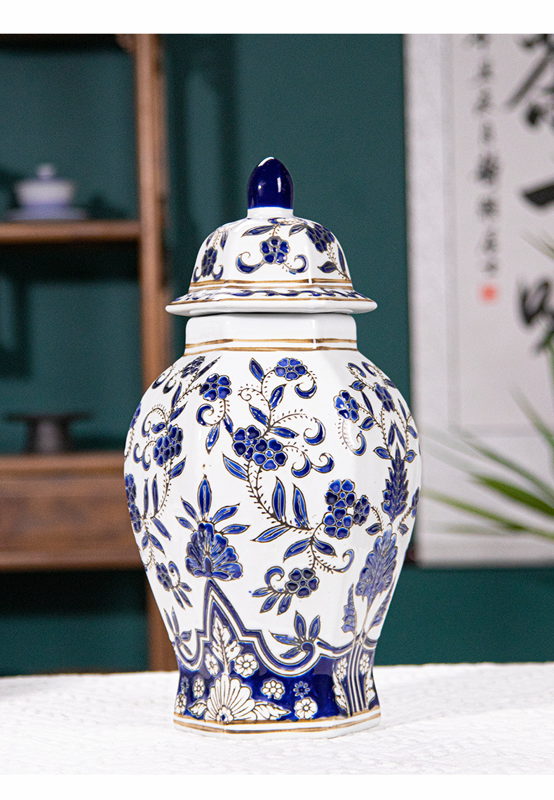 새로운 중국식 세라믹 항아리 꽃병 수경 거실 입구 보석 장식 TV 캐비닛 장식 6 면 일반 항아리