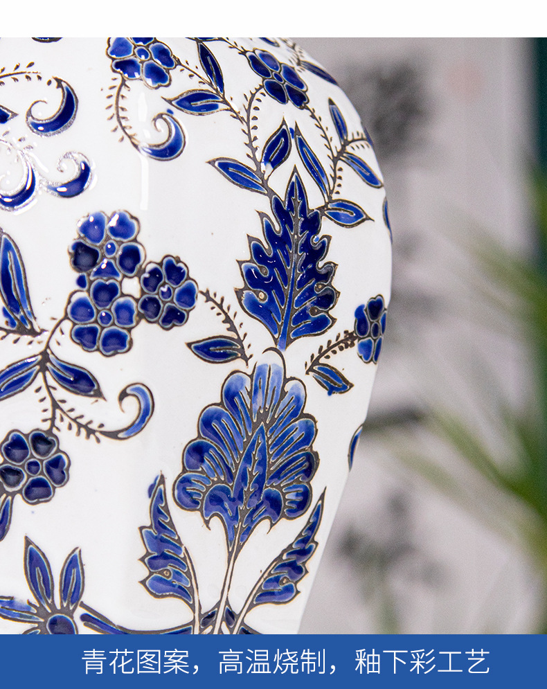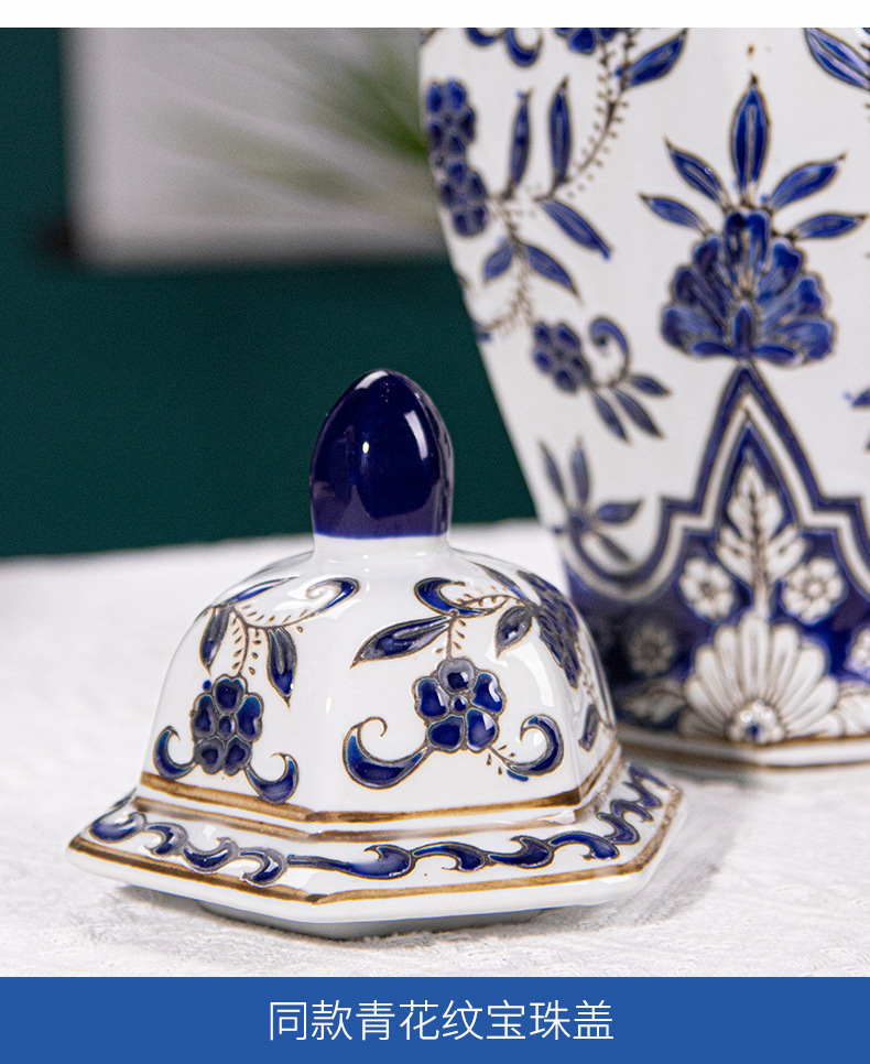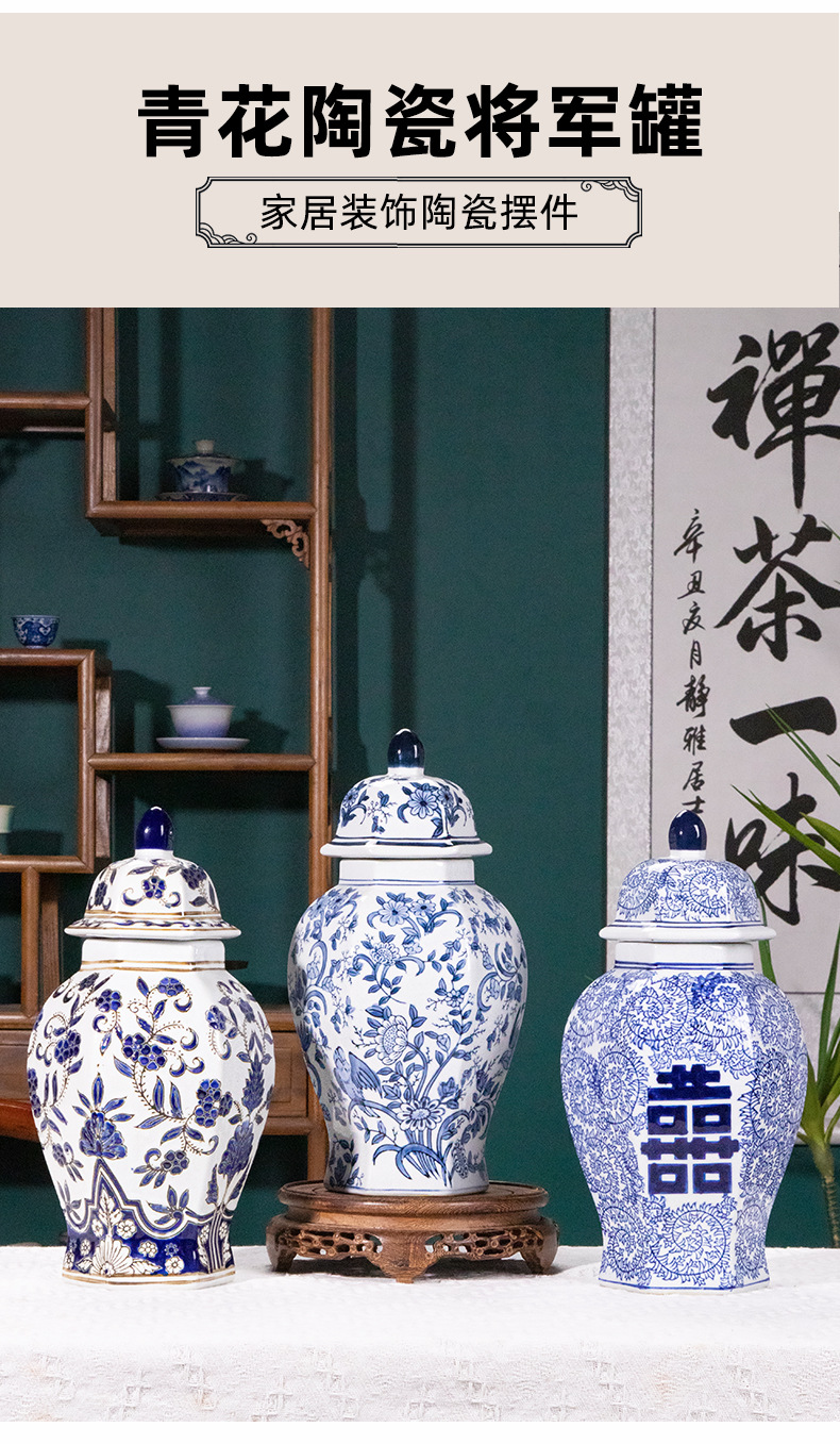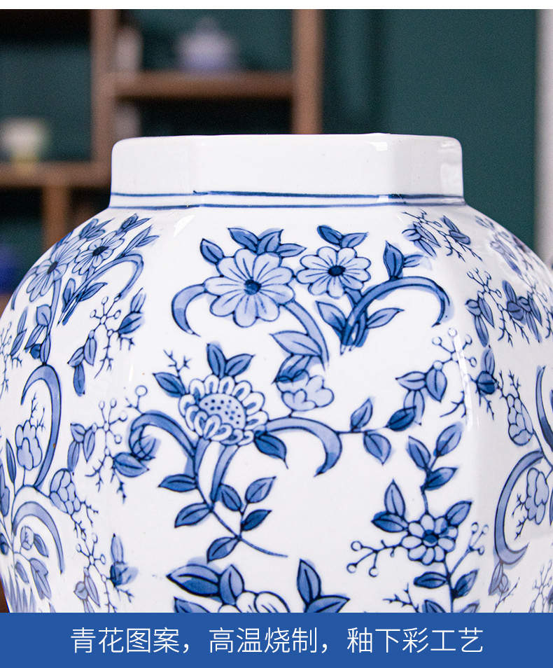 새로운 중국식 세라믹 항아리 꽃병 수경 거실 입구 보석 장식 TV 캐비닛 장식 6 면 일반 항아리스토어 가기
