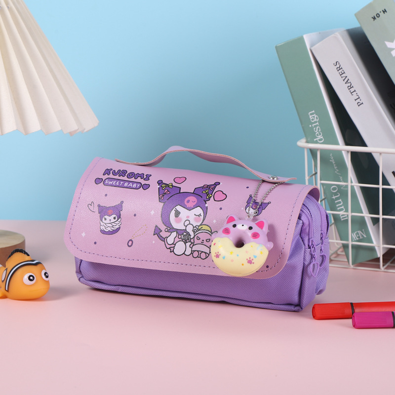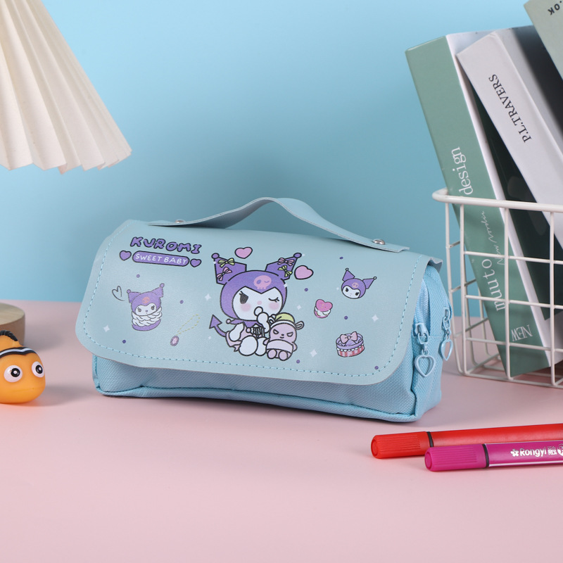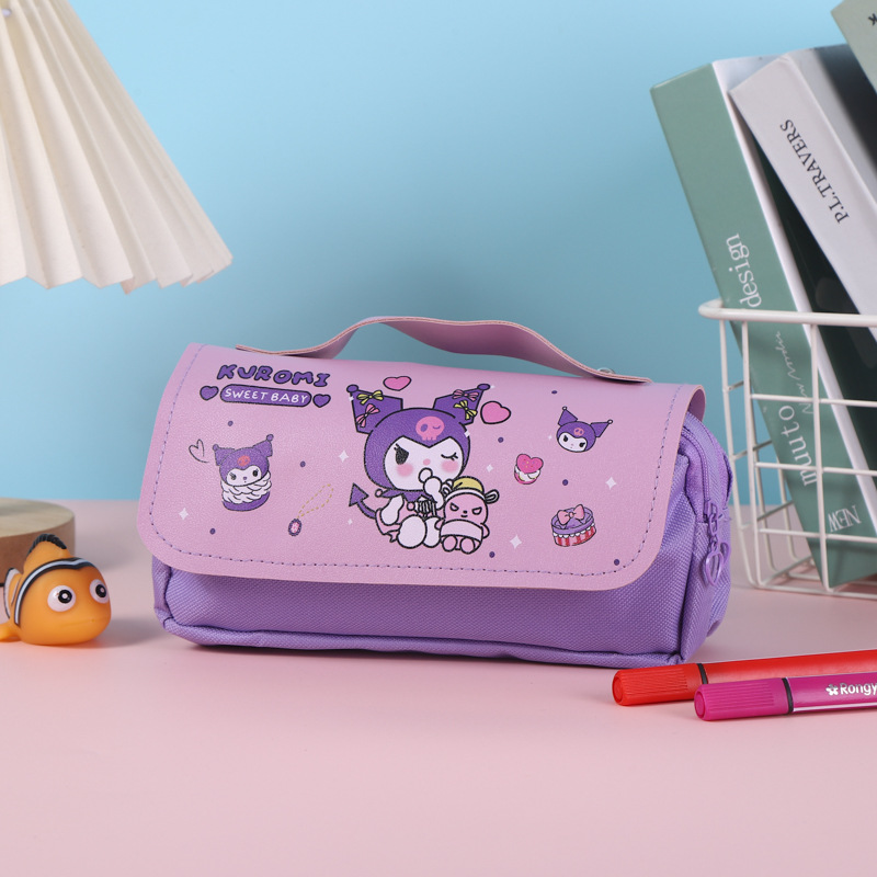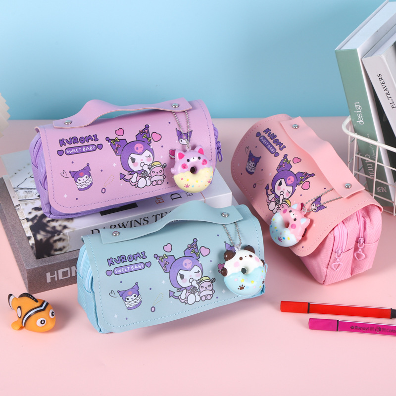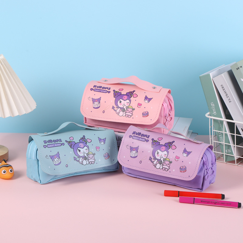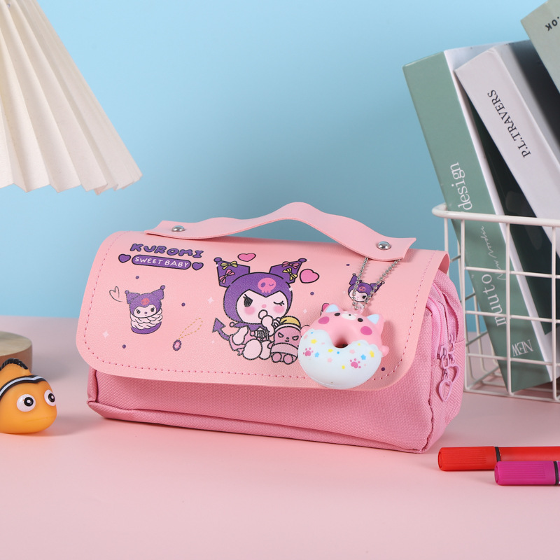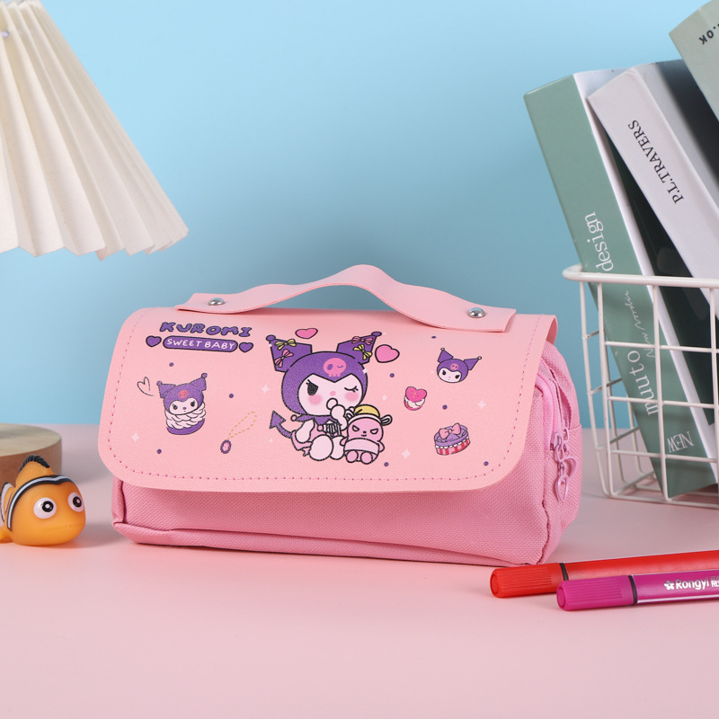 쿠로미 필통, 스트레스 해소, 예쁜 디자인, 대용량 문구함, 초등학생용 이중 필통, 도매 수납스토어 가기