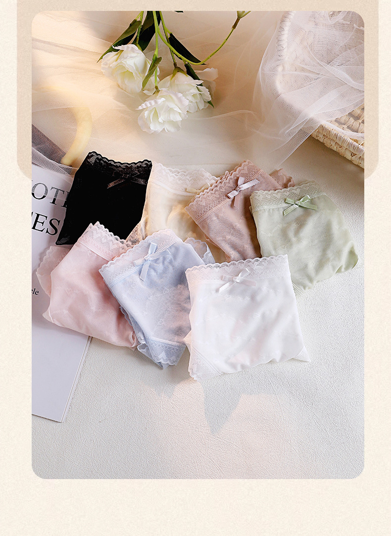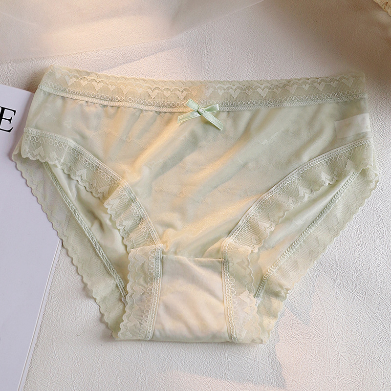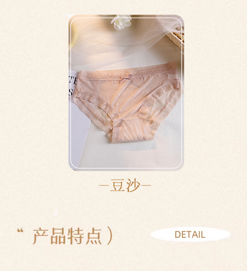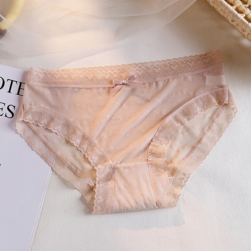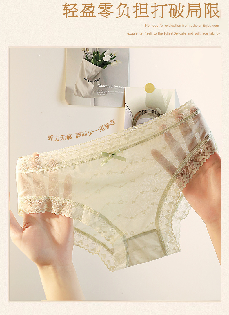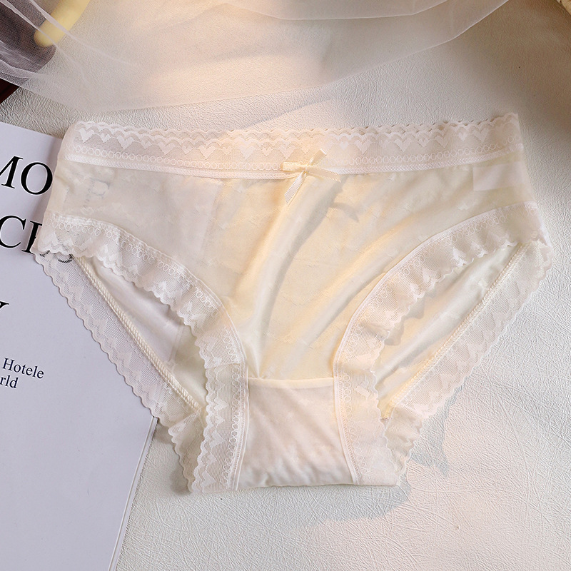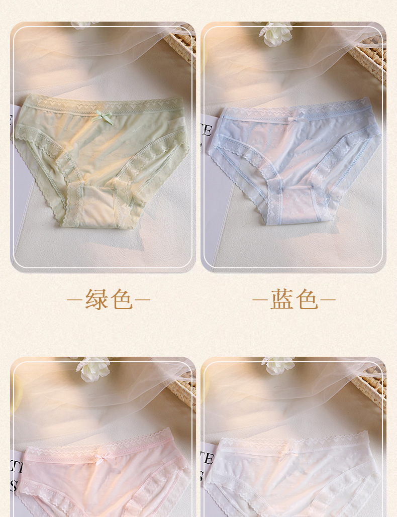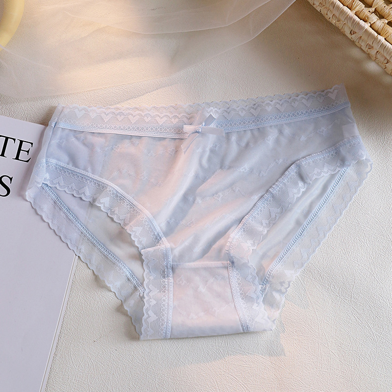 레이스 팬티 여성 2024 섹시한 소녀 순수한 욕망 메시 퓨어 코튼 크로치 없음 마크 아이스 실크 브리프 여름 얇은