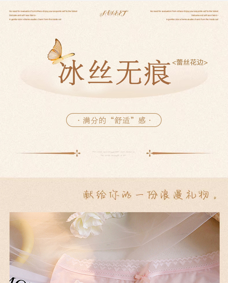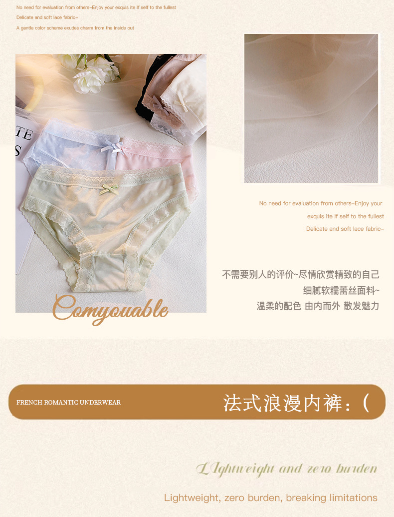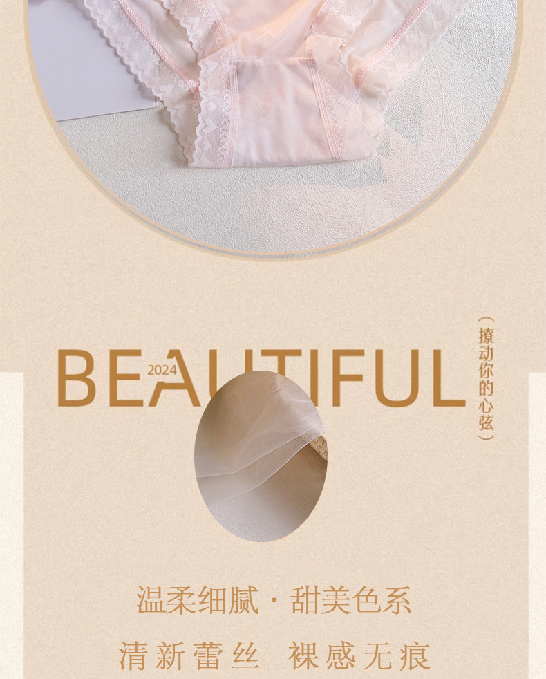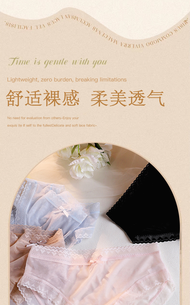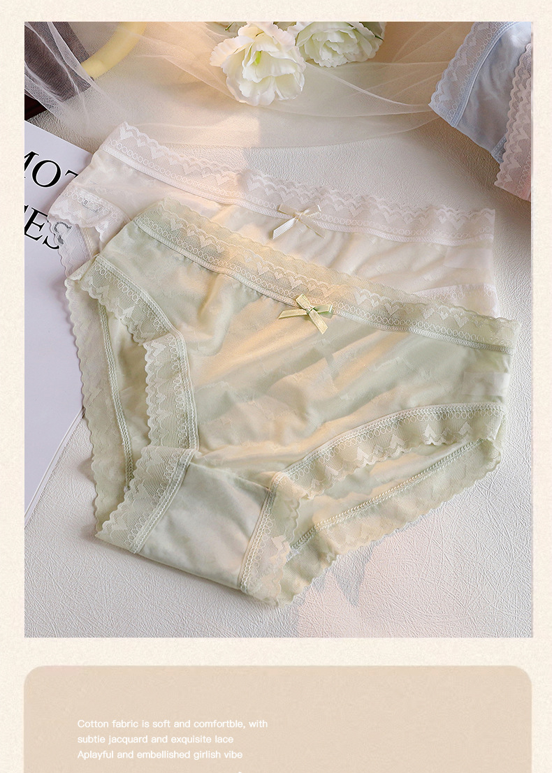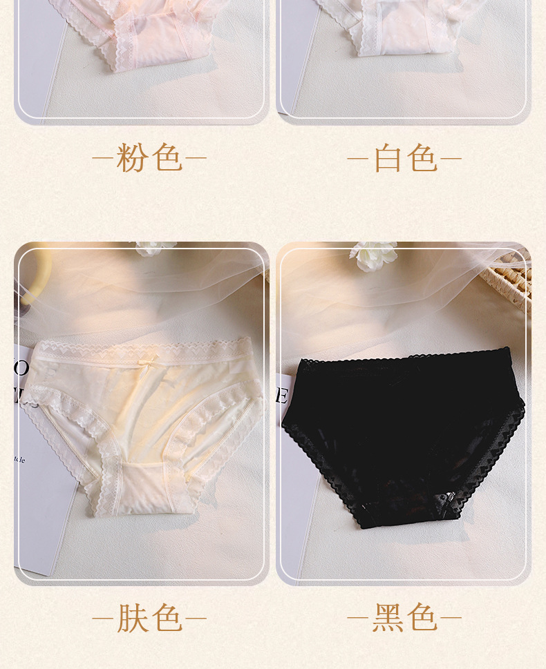 레이스 팬티 여성 2024 섹시한 소녀 순수한 욕망 메시 퓨어 코튼 크로치 없음 마크 아이스 실크 브리프 여름 얇은