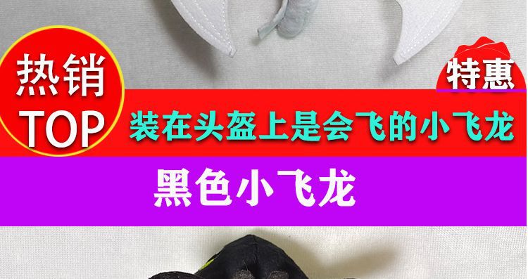 전기 자동차 헬멧 장식 작은 드래곤 날개는 새로운 이빨없는 빨판 봉제 인형 스키 높은 색상 가치를 움직입니다.스토어 가기