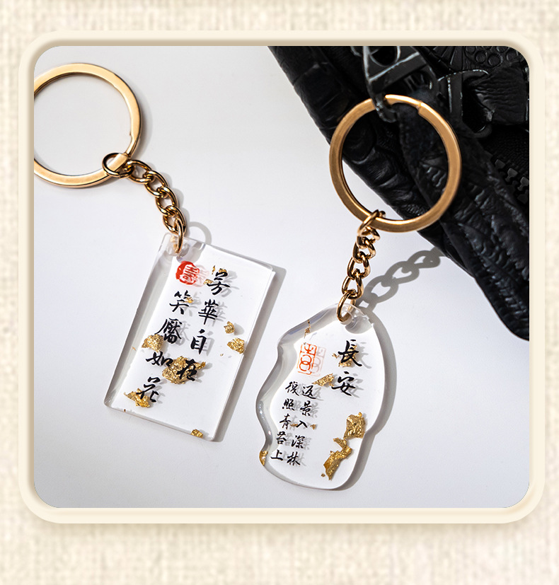 골동품 아크릴 키 체인 서예 예술 매달려 중국 스타일 캐릭터 창조적 인 펜던트 영감 축복 선물