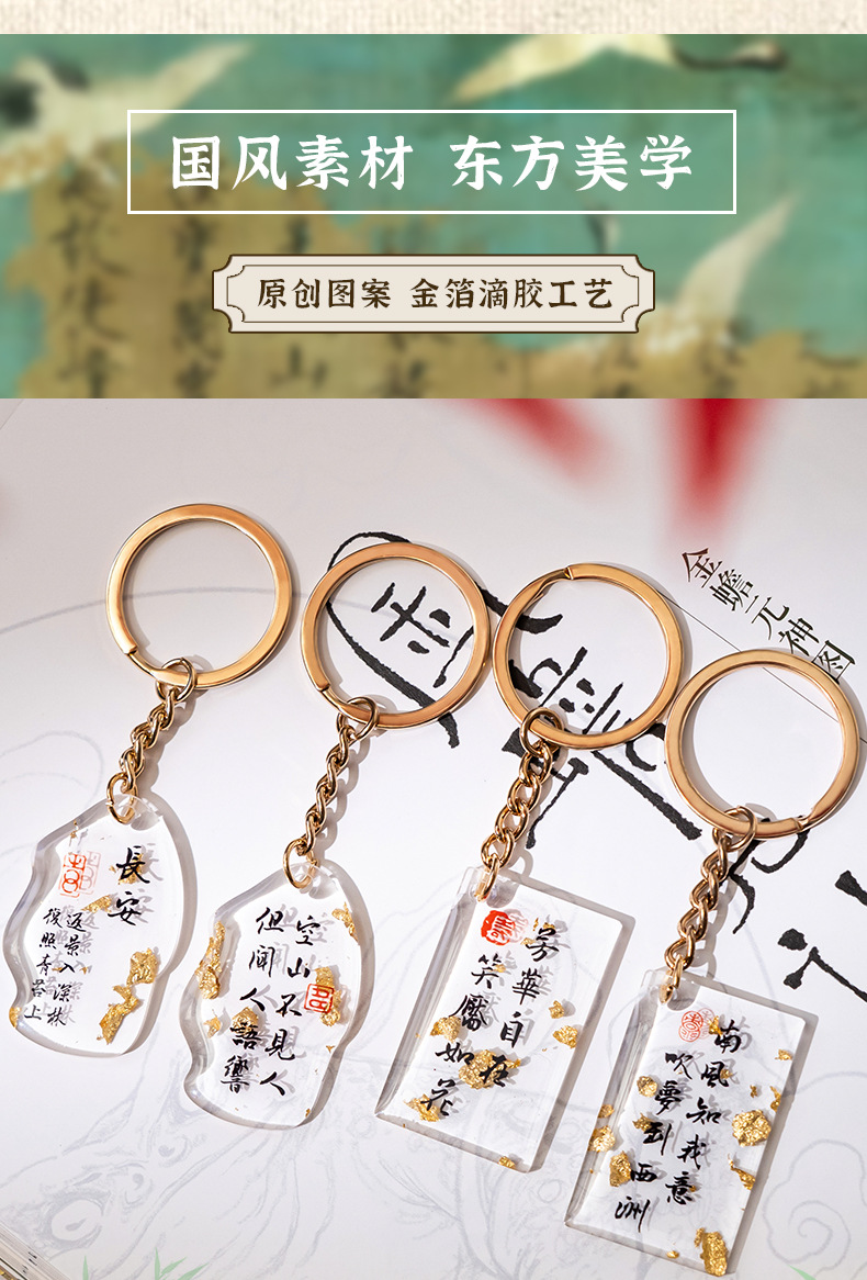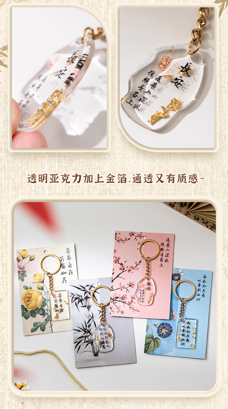 골동품 아크릴 키 체인 서예 예술 매달려 중국 스타일 캐릭터 창조적 인 펜던트 영감 축복 선물스토어 가기
