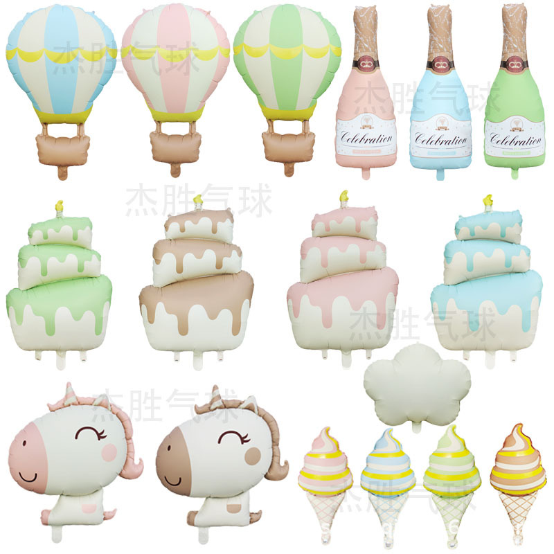 새로운 매트 아이스크림 케이크 버블 와인 병 유니콘 모양 알루미늄 필름 풍선 생일 파티 장식 풍선스토어 가기