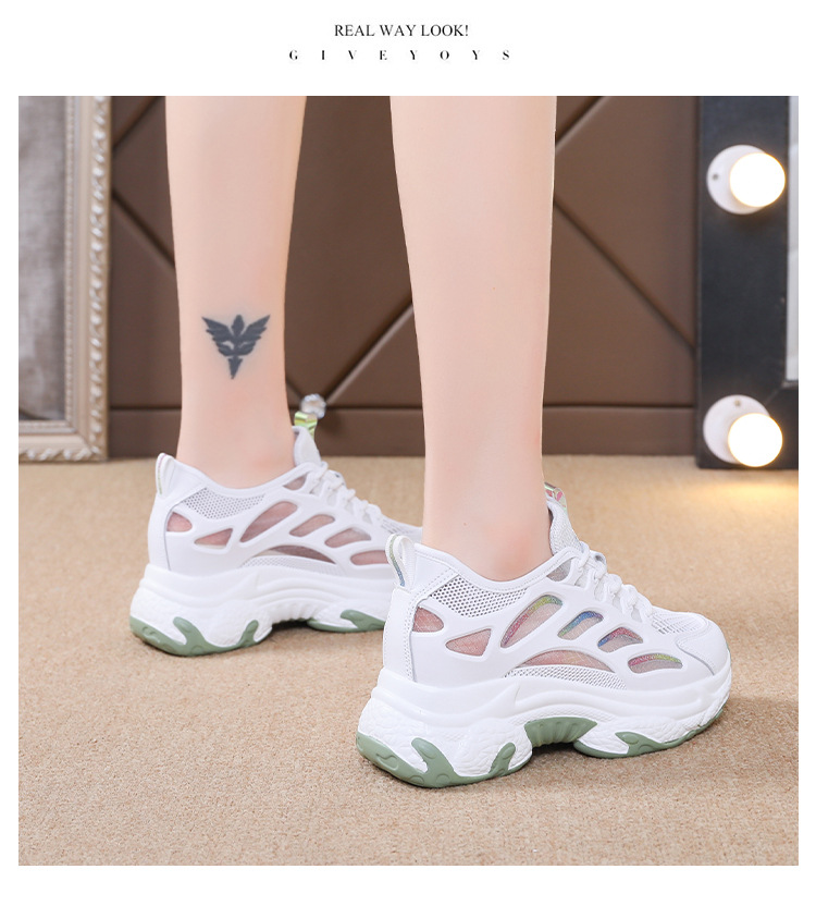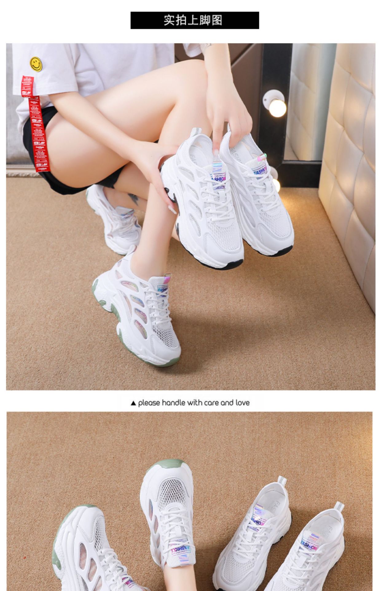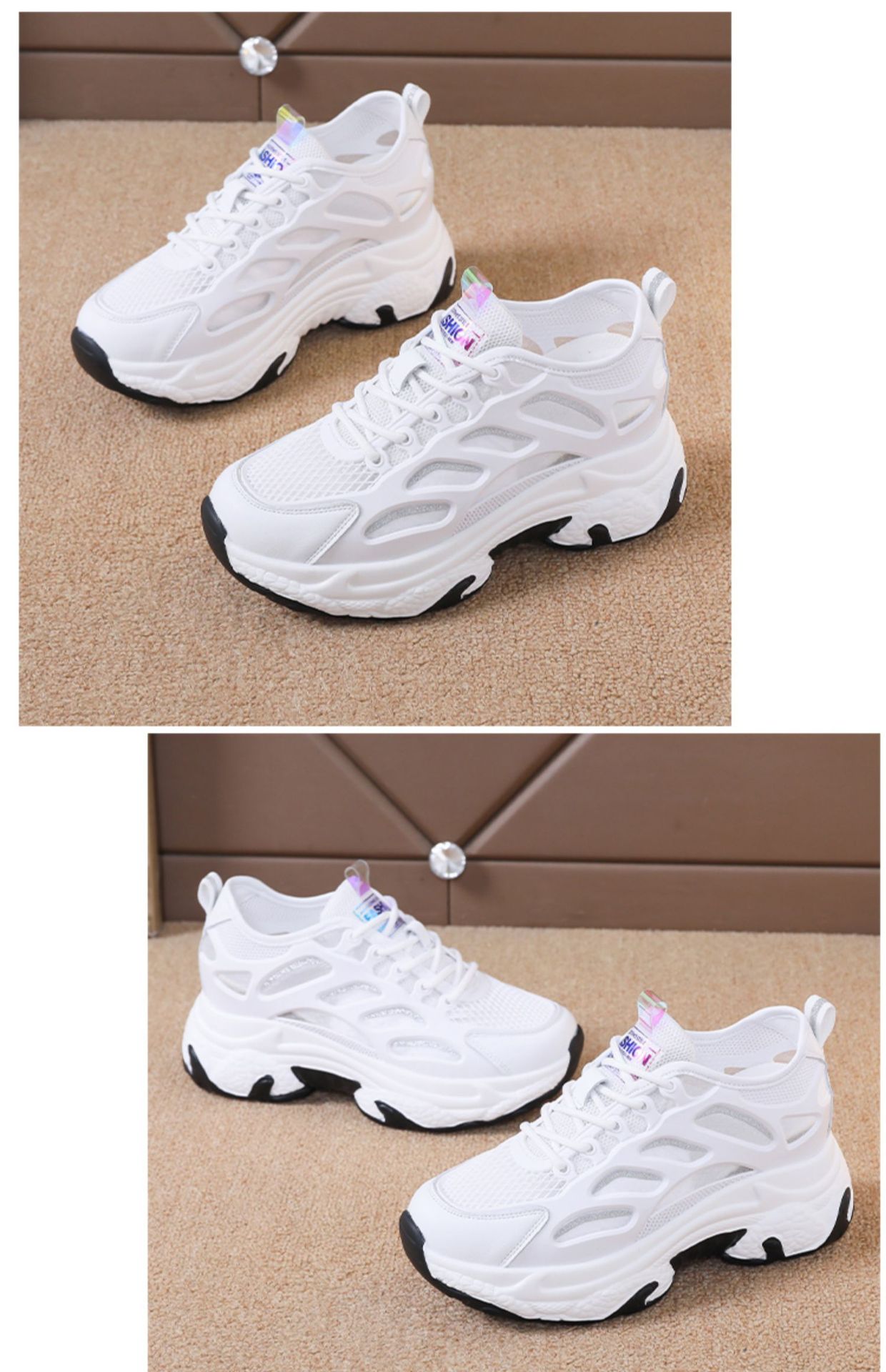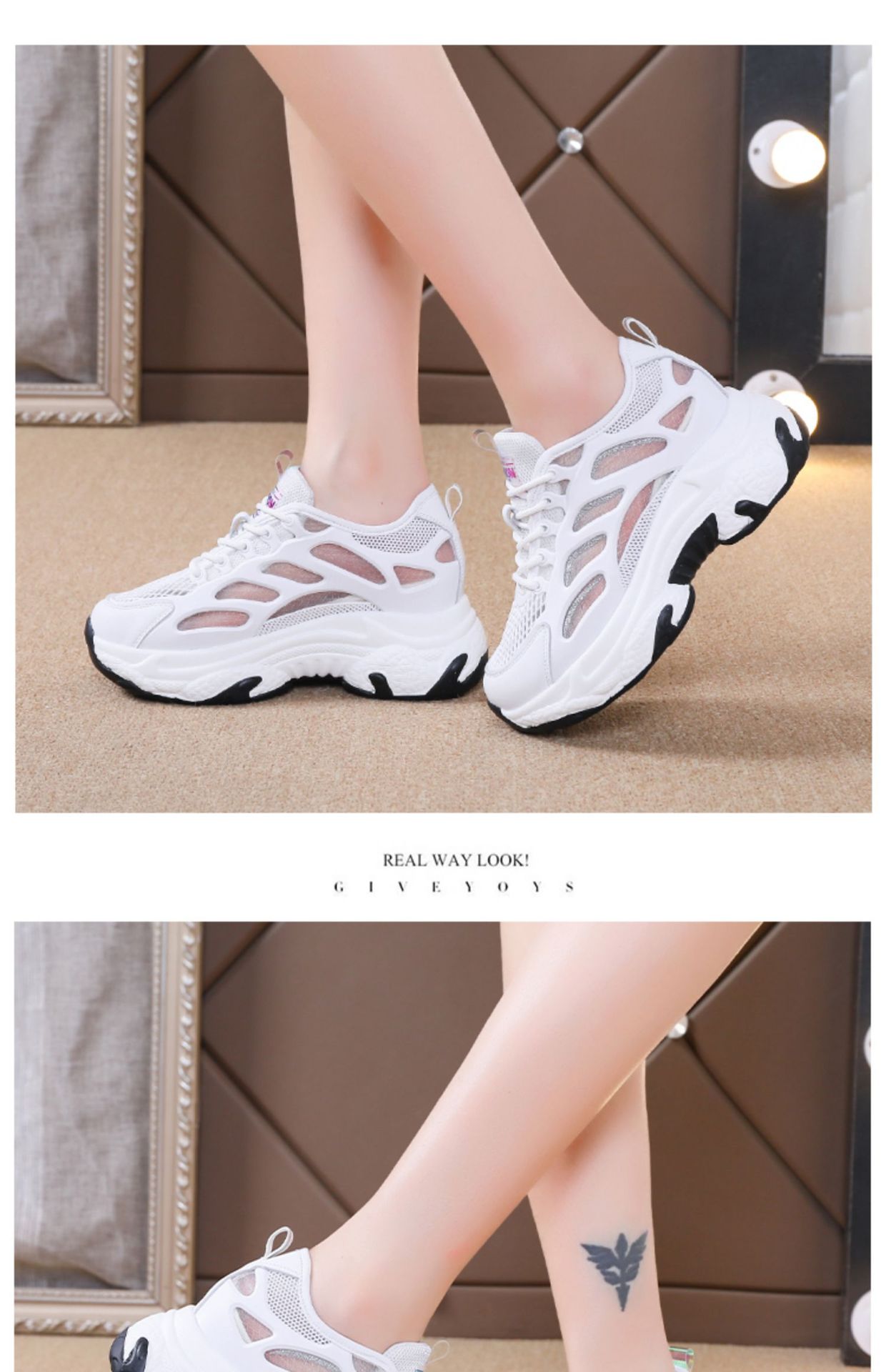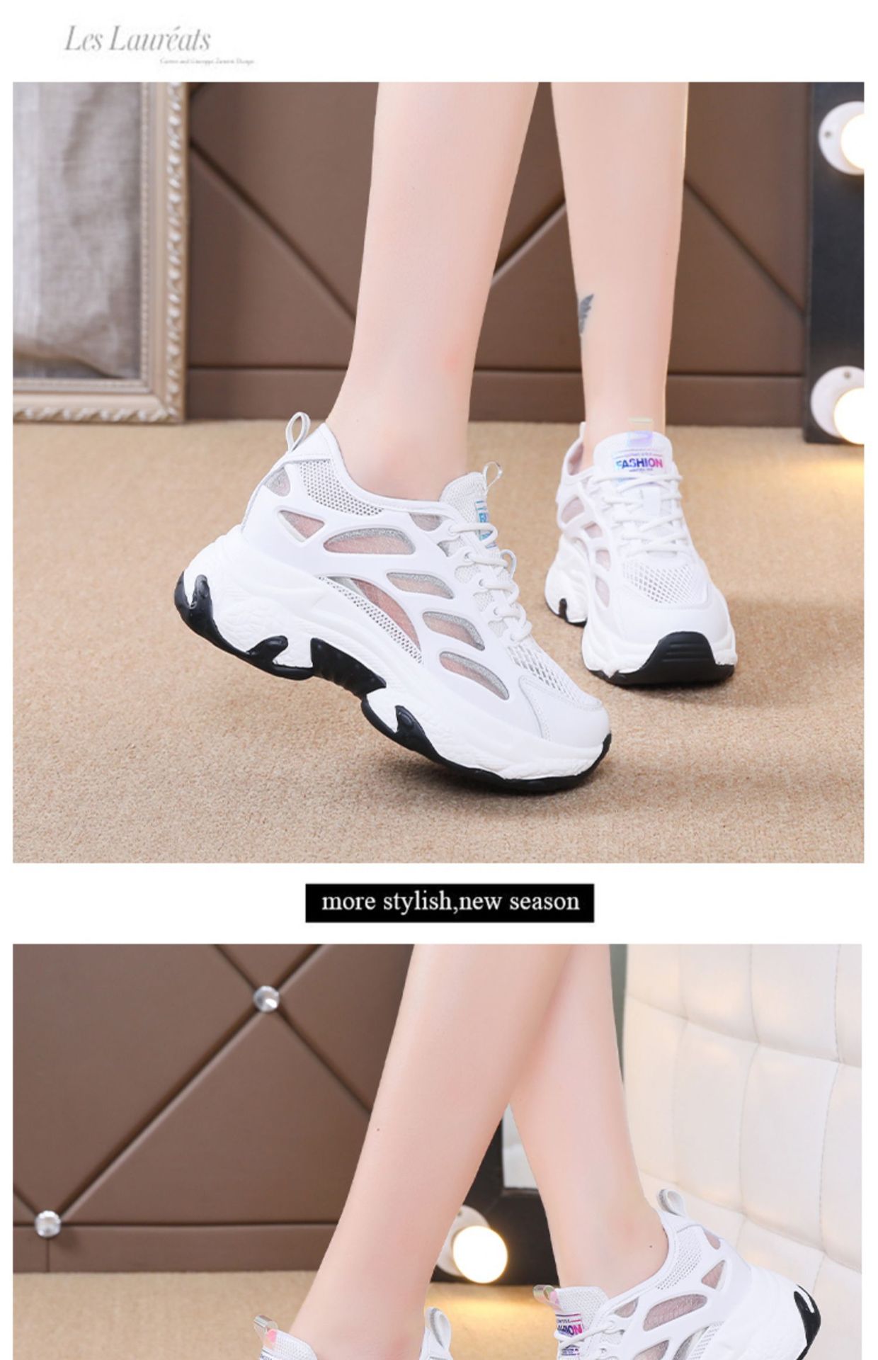 2025년 신상 여름 얇은 메쉬 여성용 아빠 신발, 키가 큰 운동화, 여성용 다용도 캐주얼 두꺼운 밑창 흰색 메쉬 신발스토어 가기