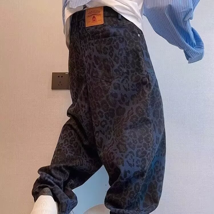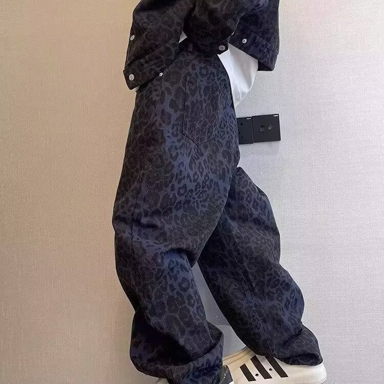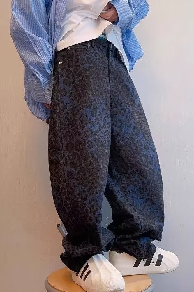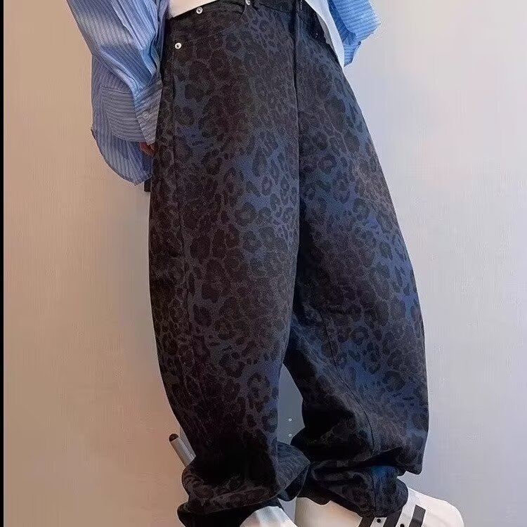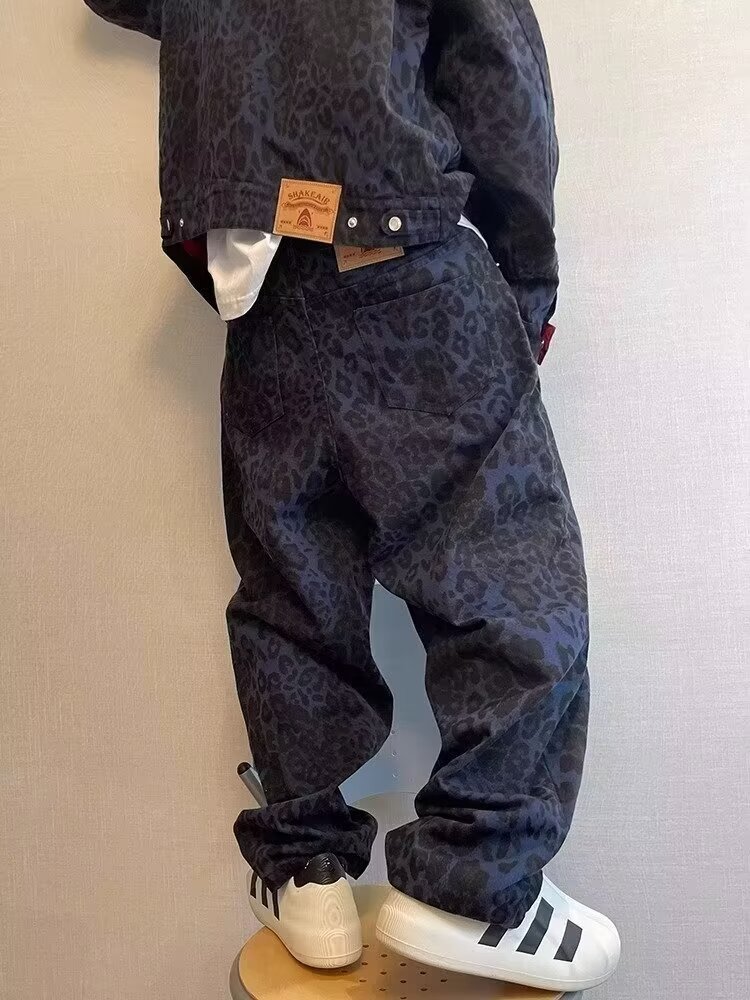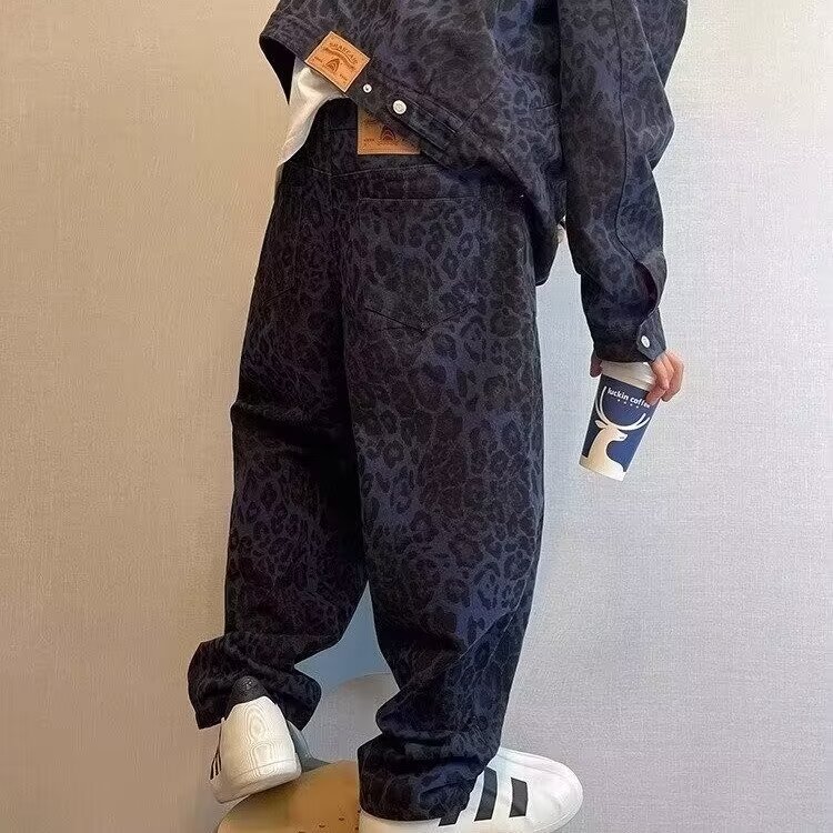 아메리칸 스트리트 청바지 남자 봄과 가을 트렌디 브랜드 틈새 풀린 올매치 핸섬 레오파드 무늬 와이드 레그 스트레이트 바지스토어 가기