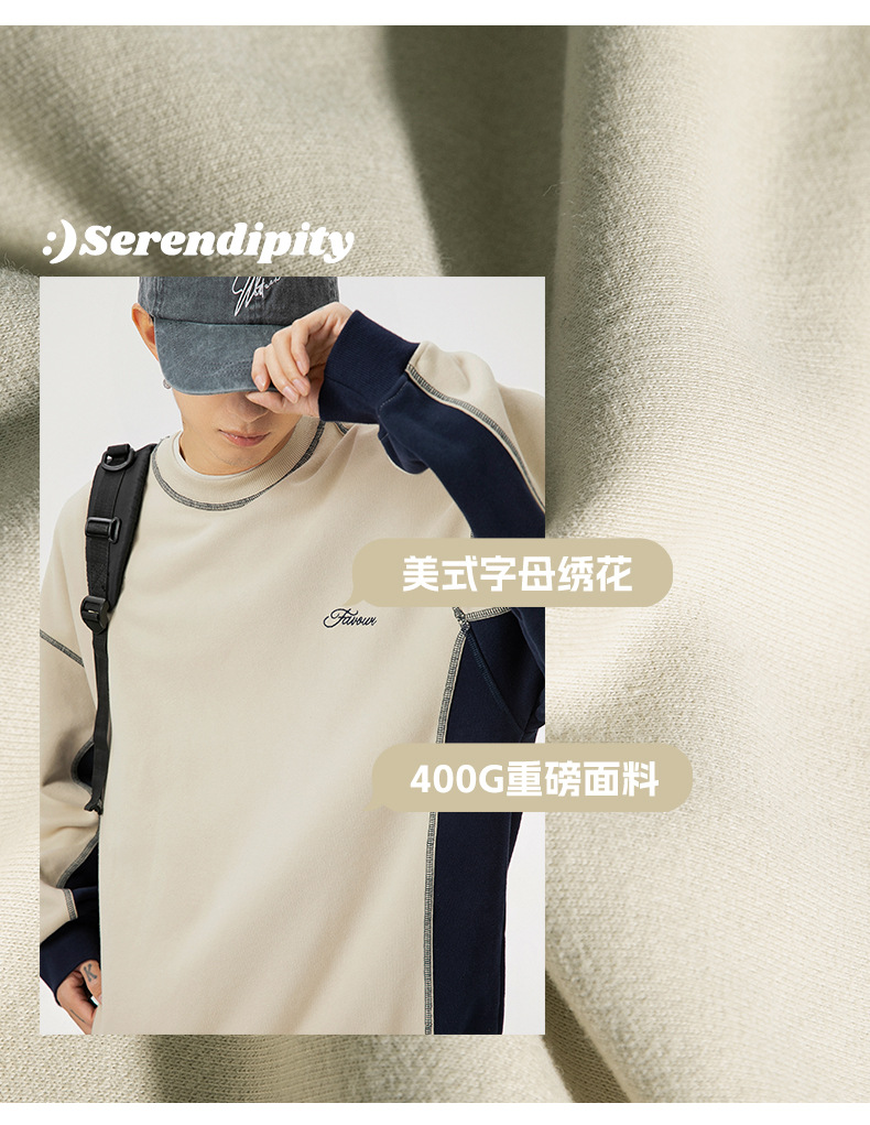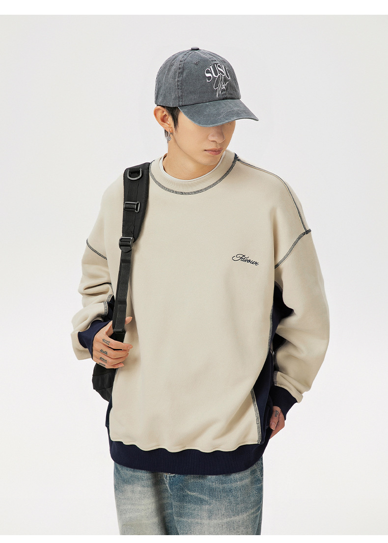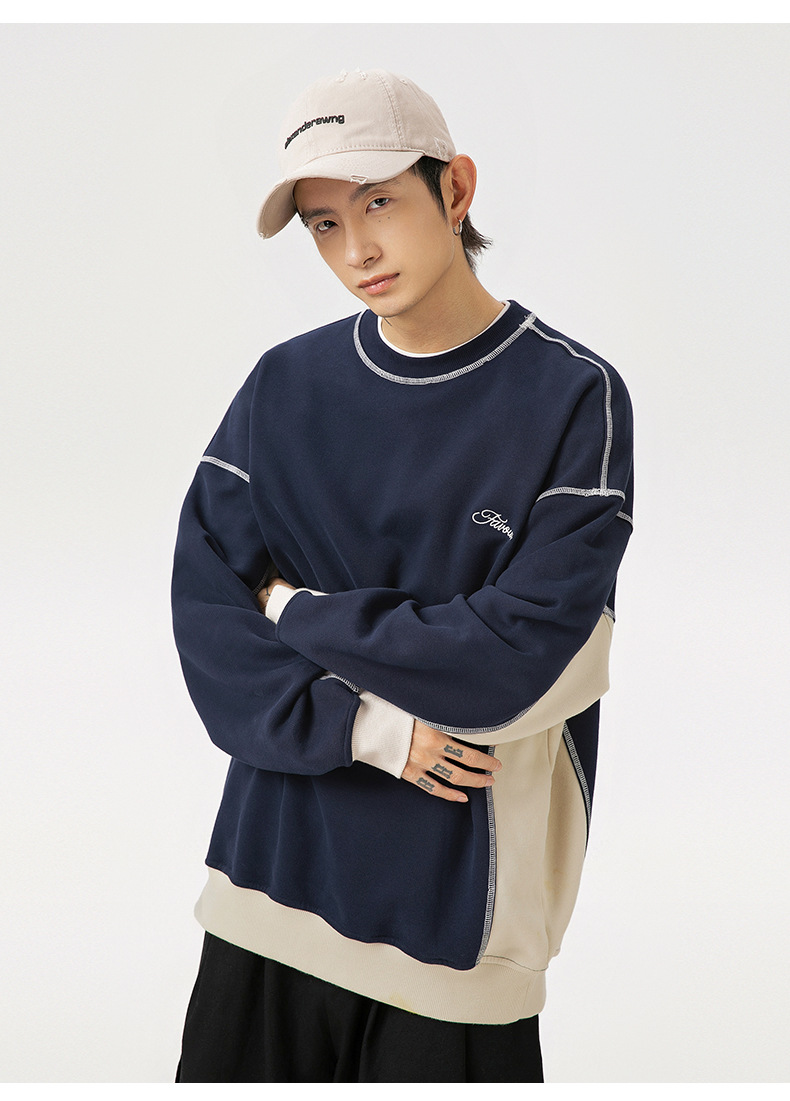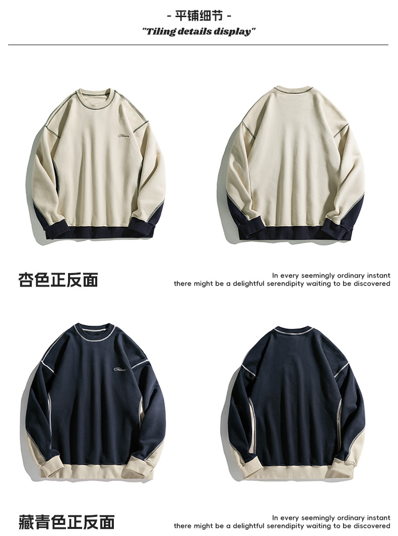 400G 헤비급 루즈 탑 스티치 대비 스웨트 셔츠 남성용 봄 스타일 스플 라이스 아메리칸 레트로 내셔널 패션 커플 캐주얼 재킷