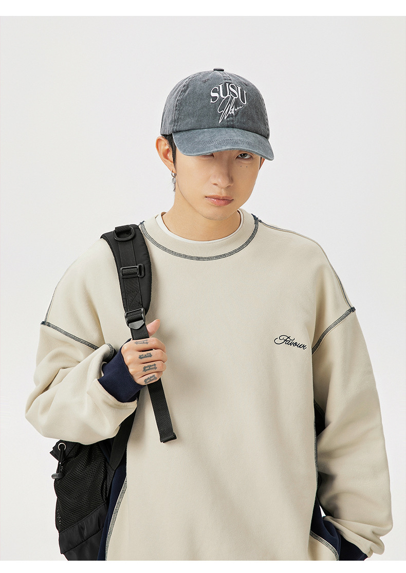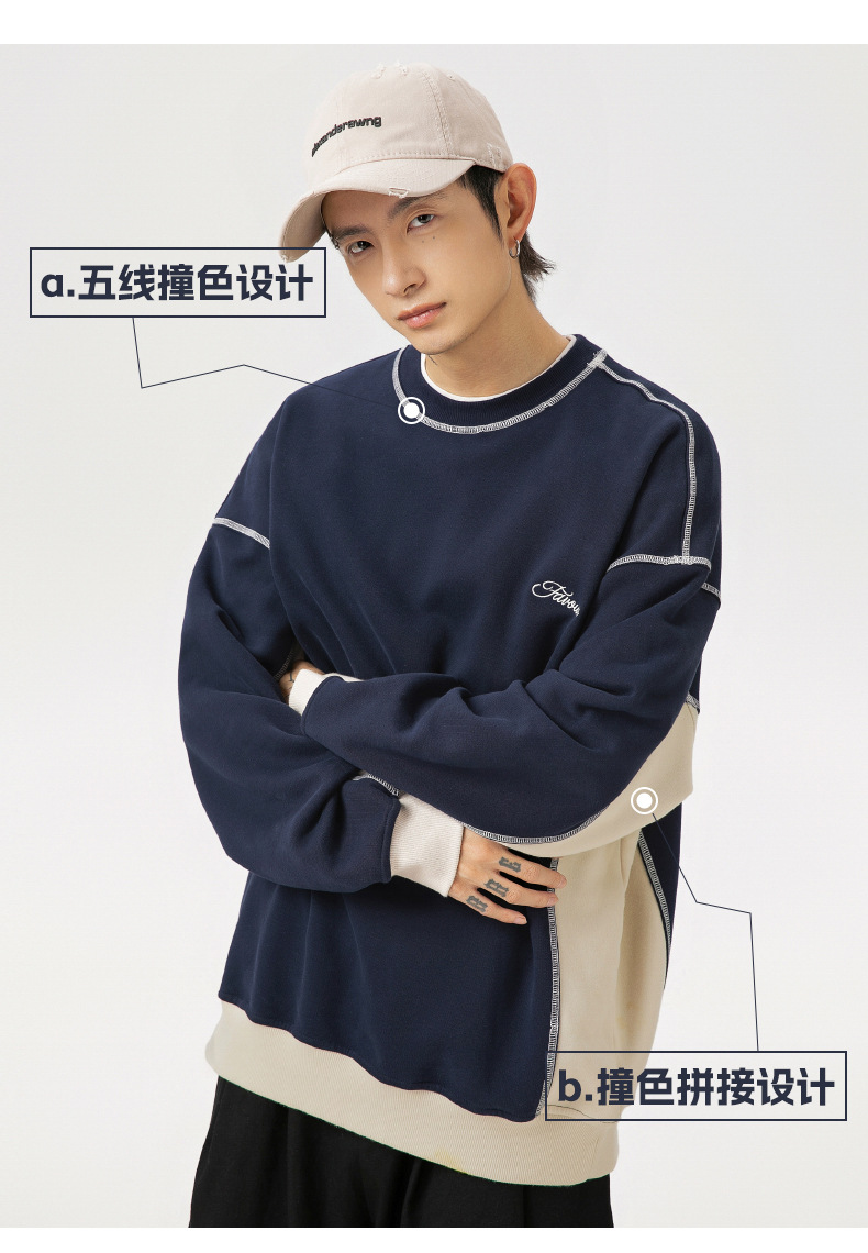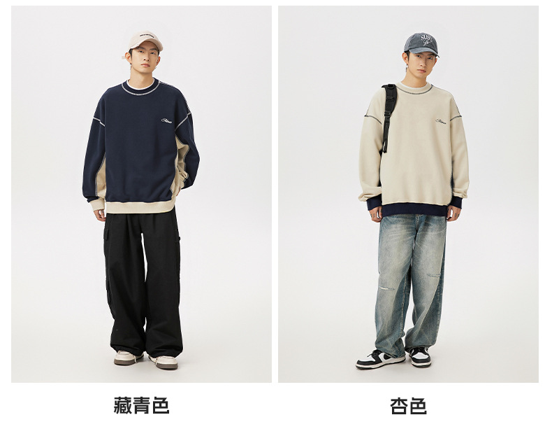 400G 헤비급 루즈 탑 스티치 대비 스웨트 셔츠 남성용 봄 스타일 스플 라이스 아메리칸 레트로 내셔널 패션 커플 캐주얼 재킷스토어 가기