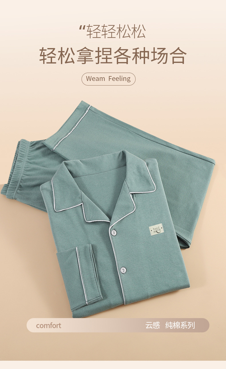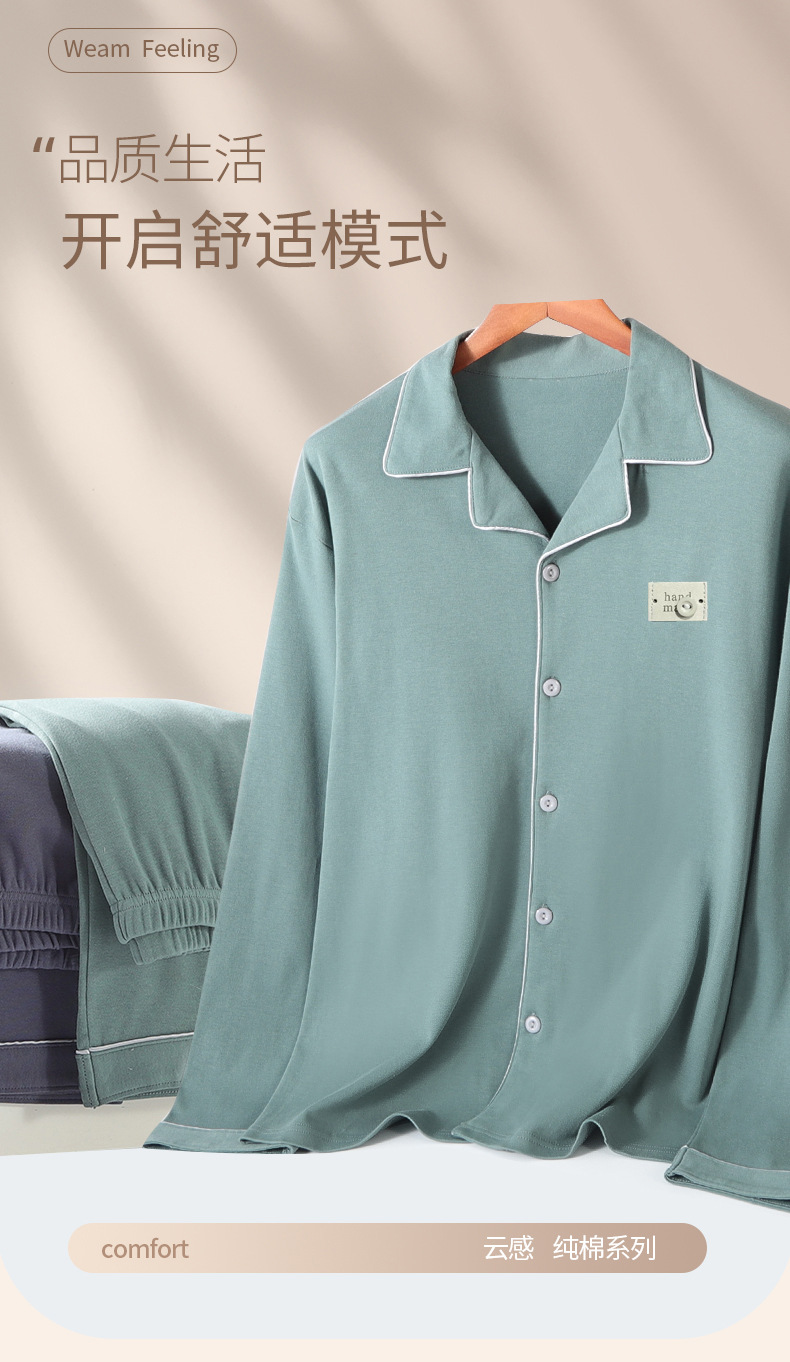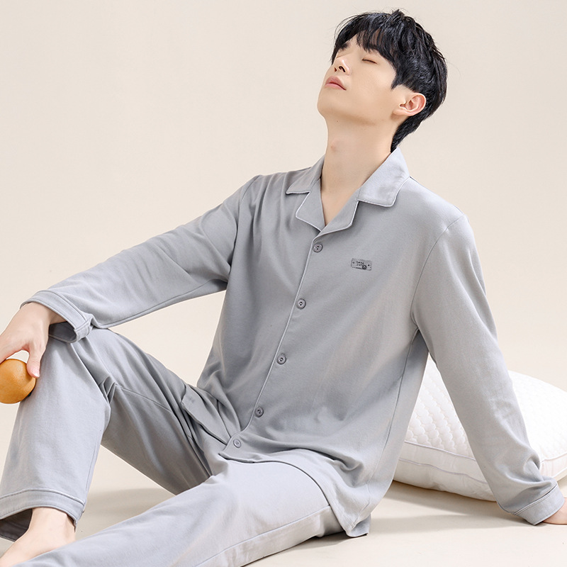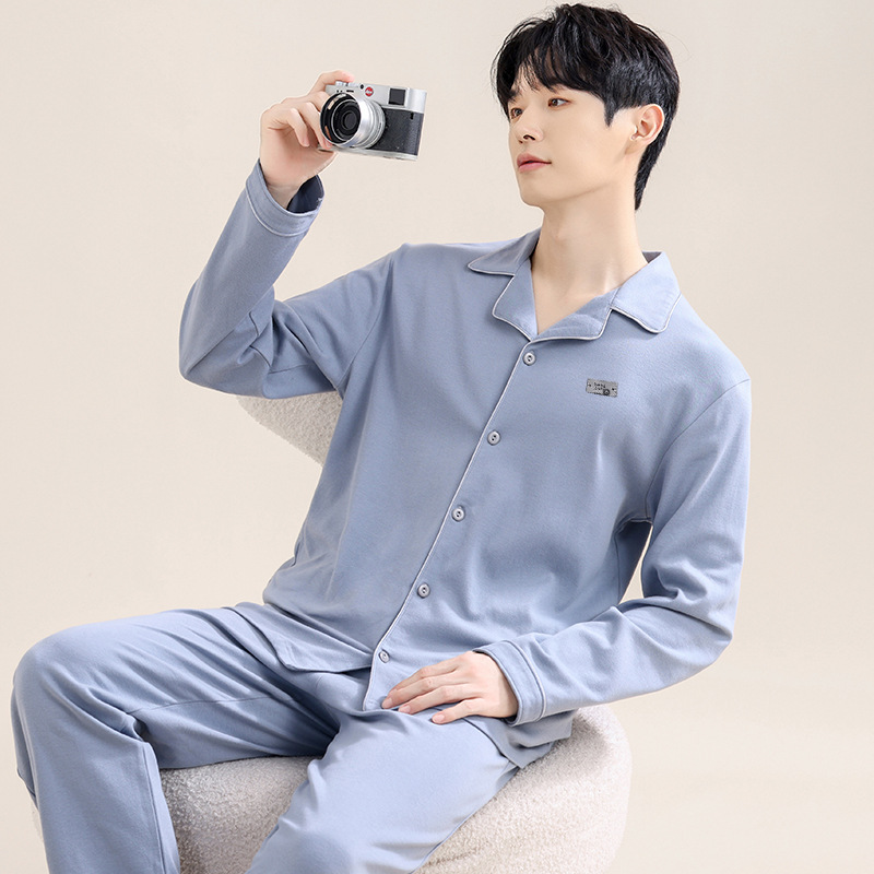 유자오린 봄 여름 신상 남성 잠옷 순면 긴팔 가디건 홈웨어 통기성 땀 흡수 외출복 가능 캐주얼 스타일
