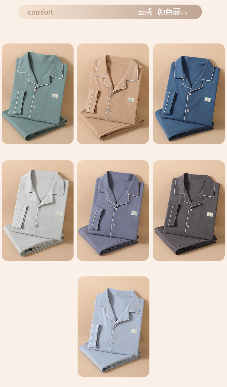 유자오린 봄 여름 신상 남성 잠옷 순면 긴팔 가디건 홈웨어 통기성 땀 흡수 외출복 가능 캐주얼 스타일스토어 가기
