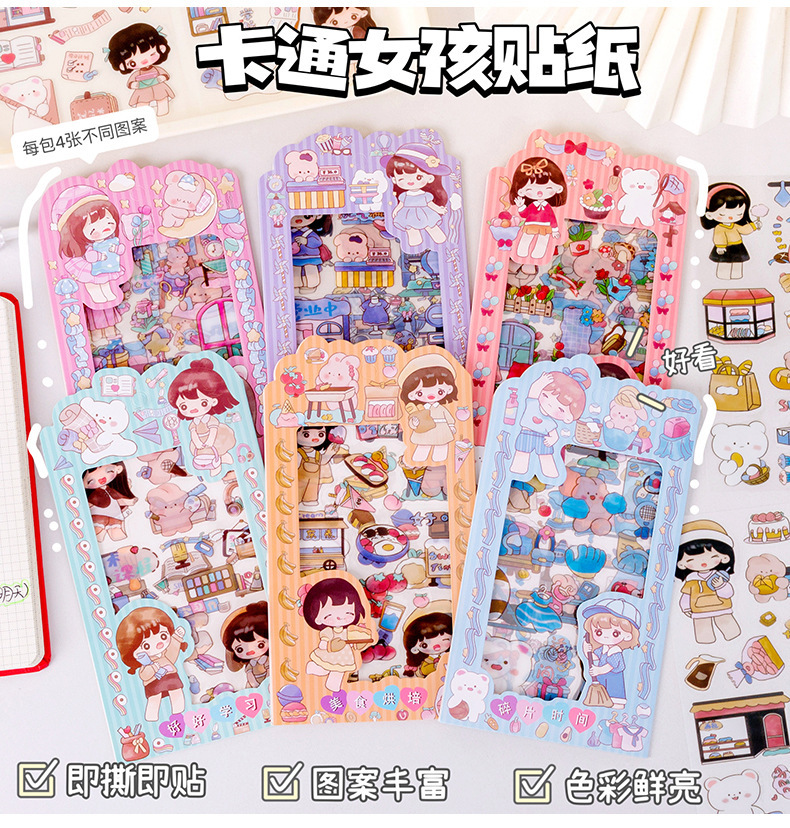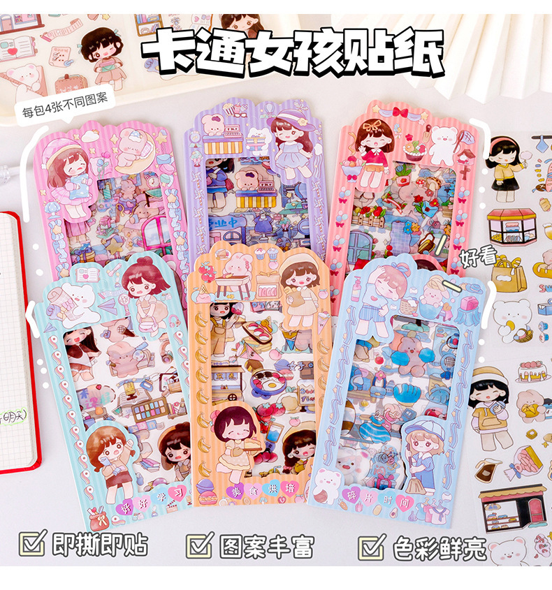 만화 귀여운 스티커 높은 색상 가치 소녀 손 계정 페이스트 소재 어린이 diy 장식 애완 동물 방수 스티커 도매스토어 가기