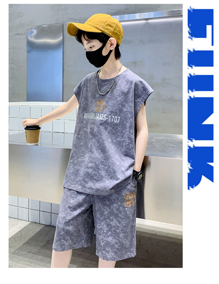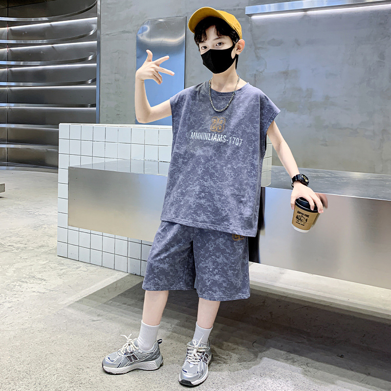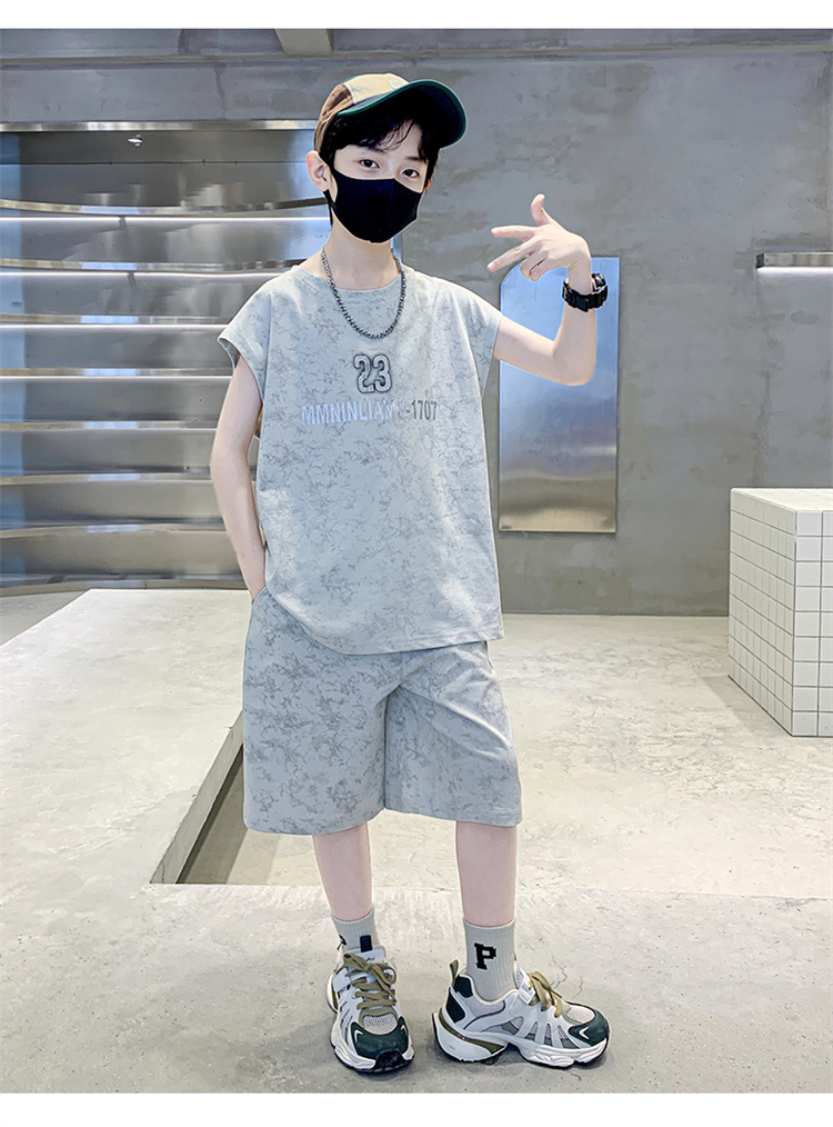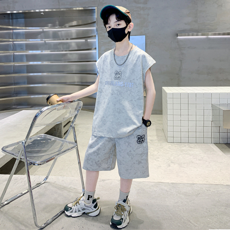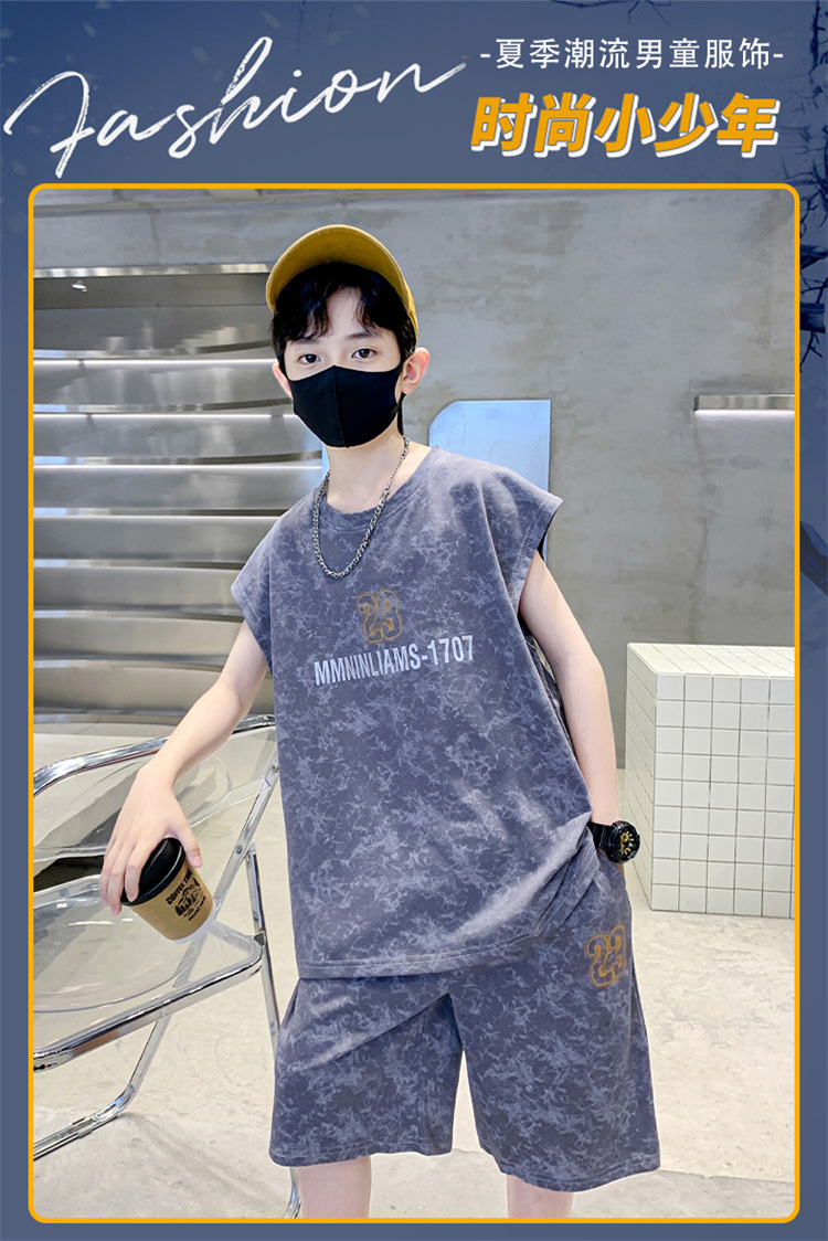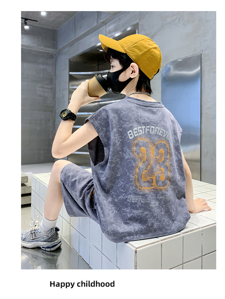 남자들의 여름 세트 2024 새로운 스타일 중대형 어린이 유행 쿨 보이즈 여름 조끼 민소매 얇은 유행스토어 가기