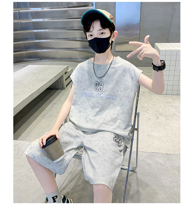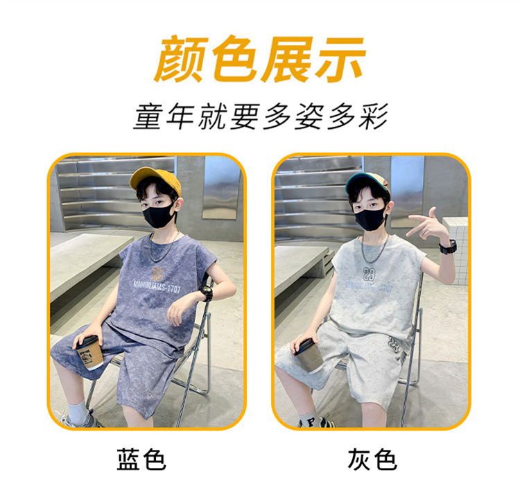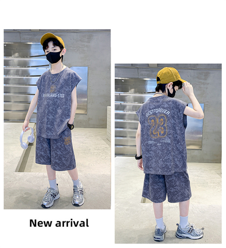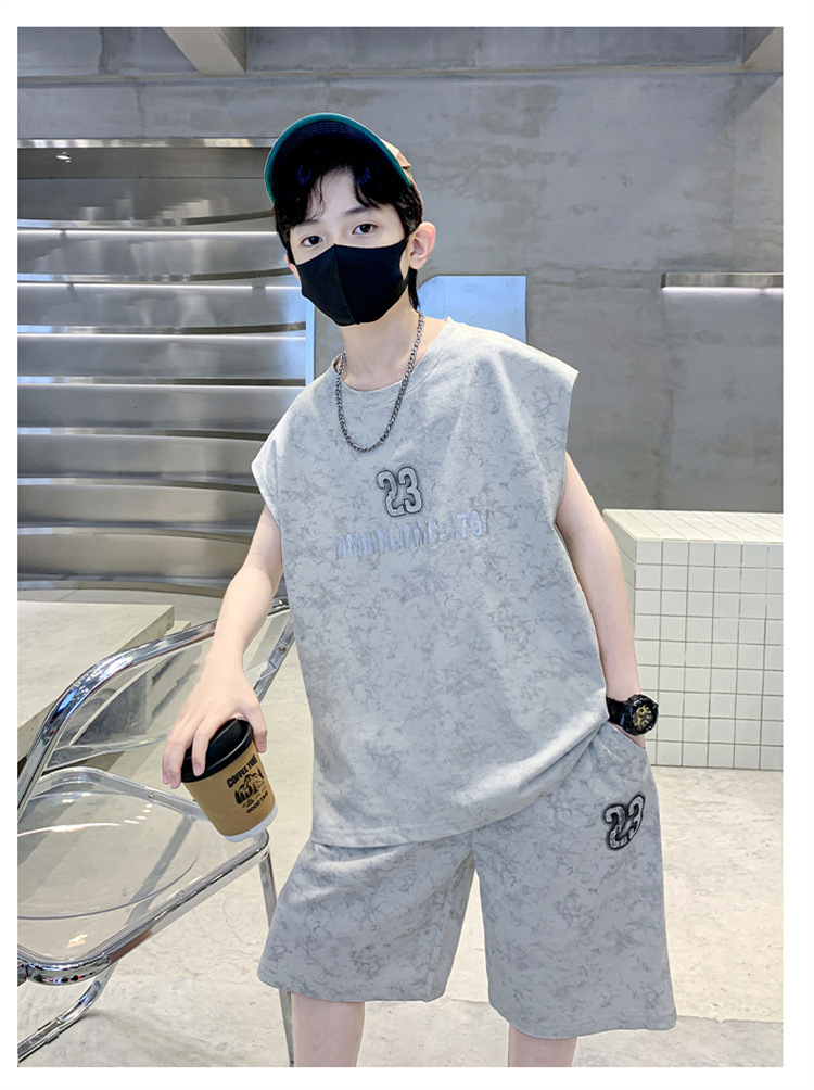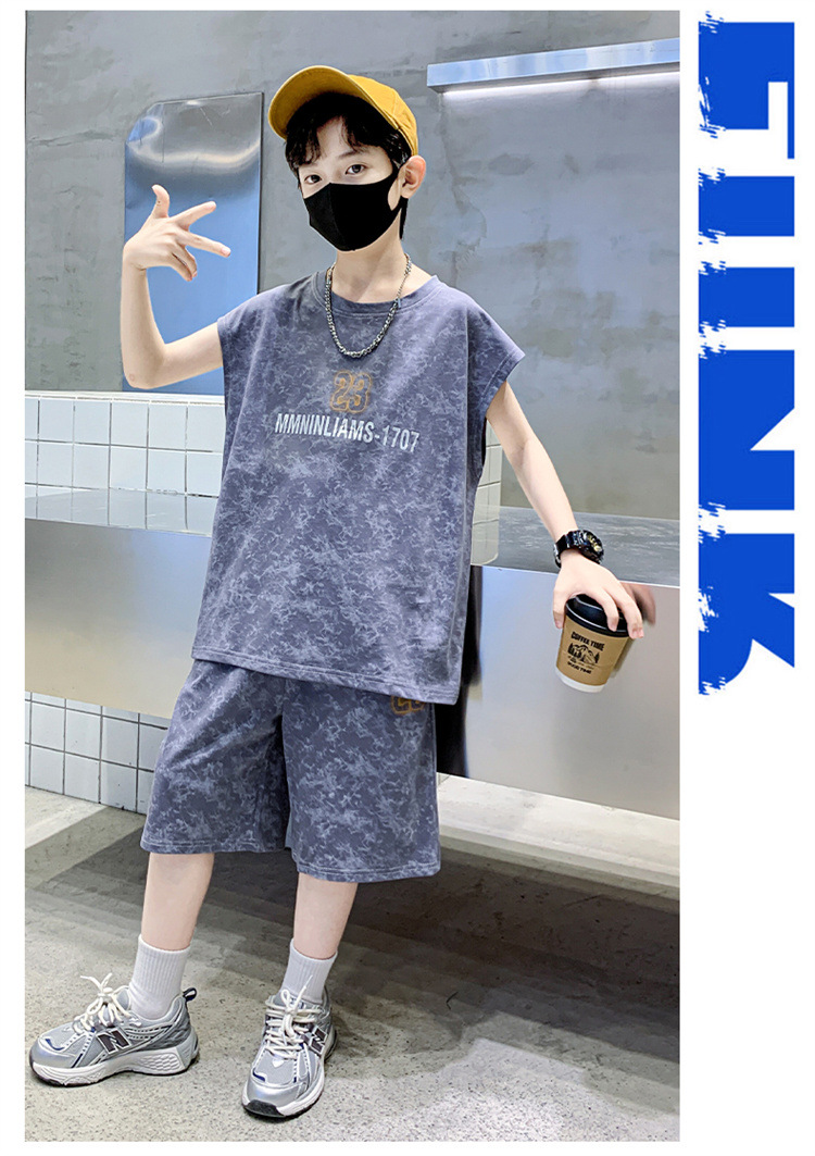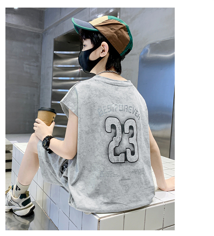 남자들의 여름 세트 2024 새로운 스타일 중대형 어린이 유행 쿨 보이즈 여름 조끼 민소매 얇은 유행스토어 가기