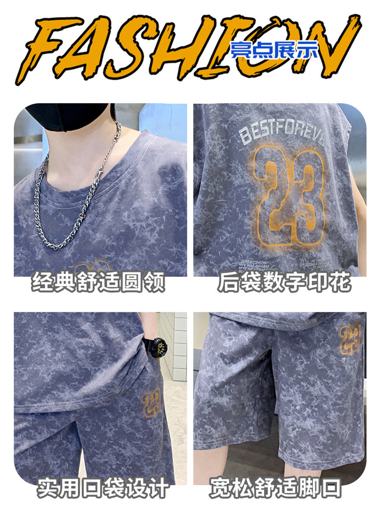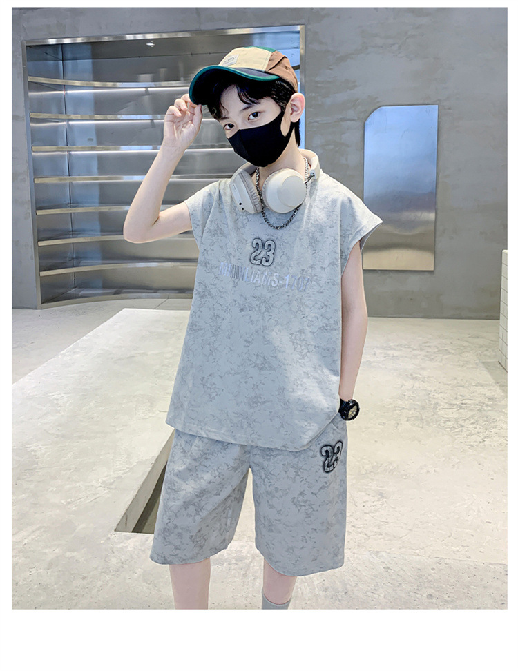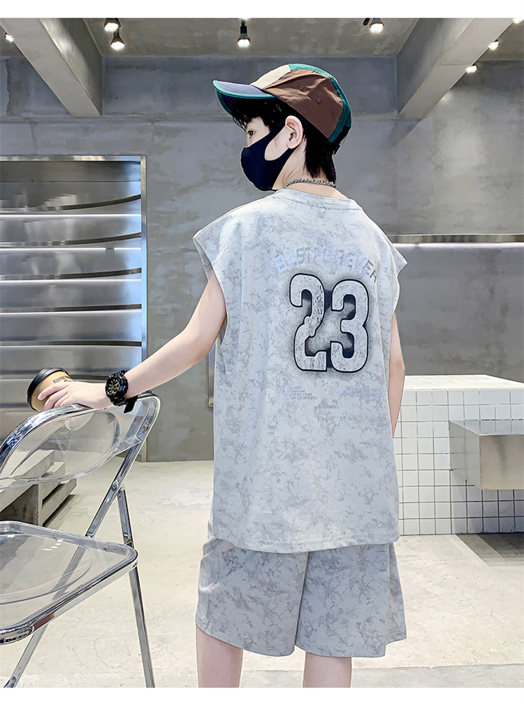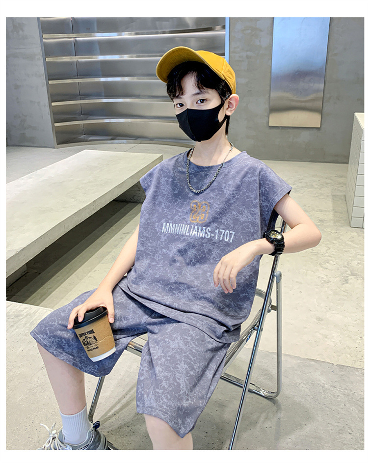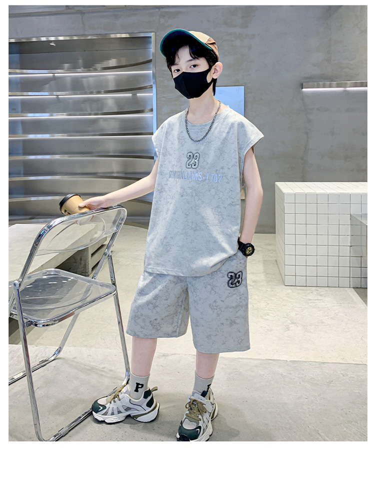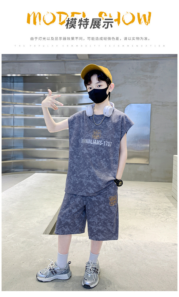 남자들의 여름 세트 2024 새로운 스타일 중대형 어린이 유행 쿨 보이즈 여름 조끼 민소매 얇은 유행스토어 가기