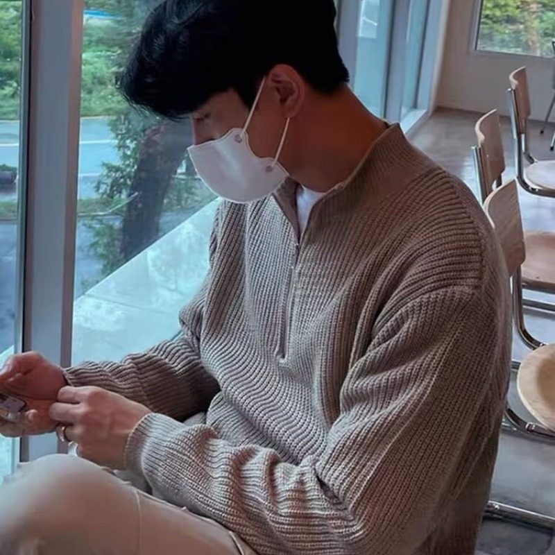 가을 하프 지퍼 스웨터 남성용 한국 스타일 트렌디하고 멋스러운 다용도 스탠드 칼라 니트 상의 하이넥 코트