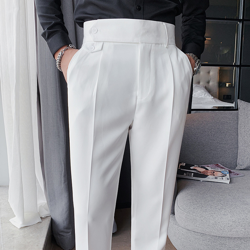 여름 캐주얼 바지 남자 스트레이트 나폴리 하이 웨이스트 바지 영국 스타일 슬림 핏 비즈니스 바지