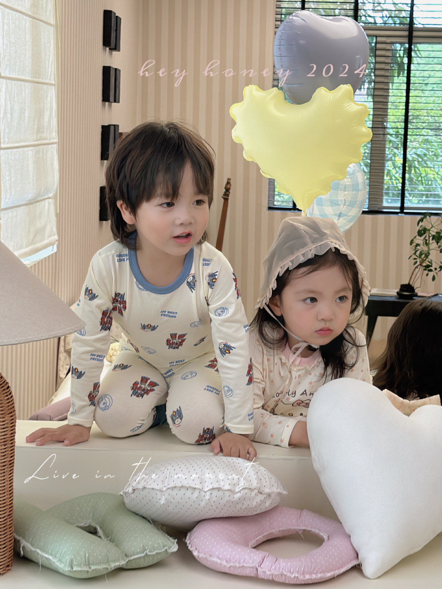 소년과 소녀를위한 크고 작은 롤 Hey honey 200 클레카 가을 옷과 긴 바지 속옷 세트 순수 코튼 잠옷