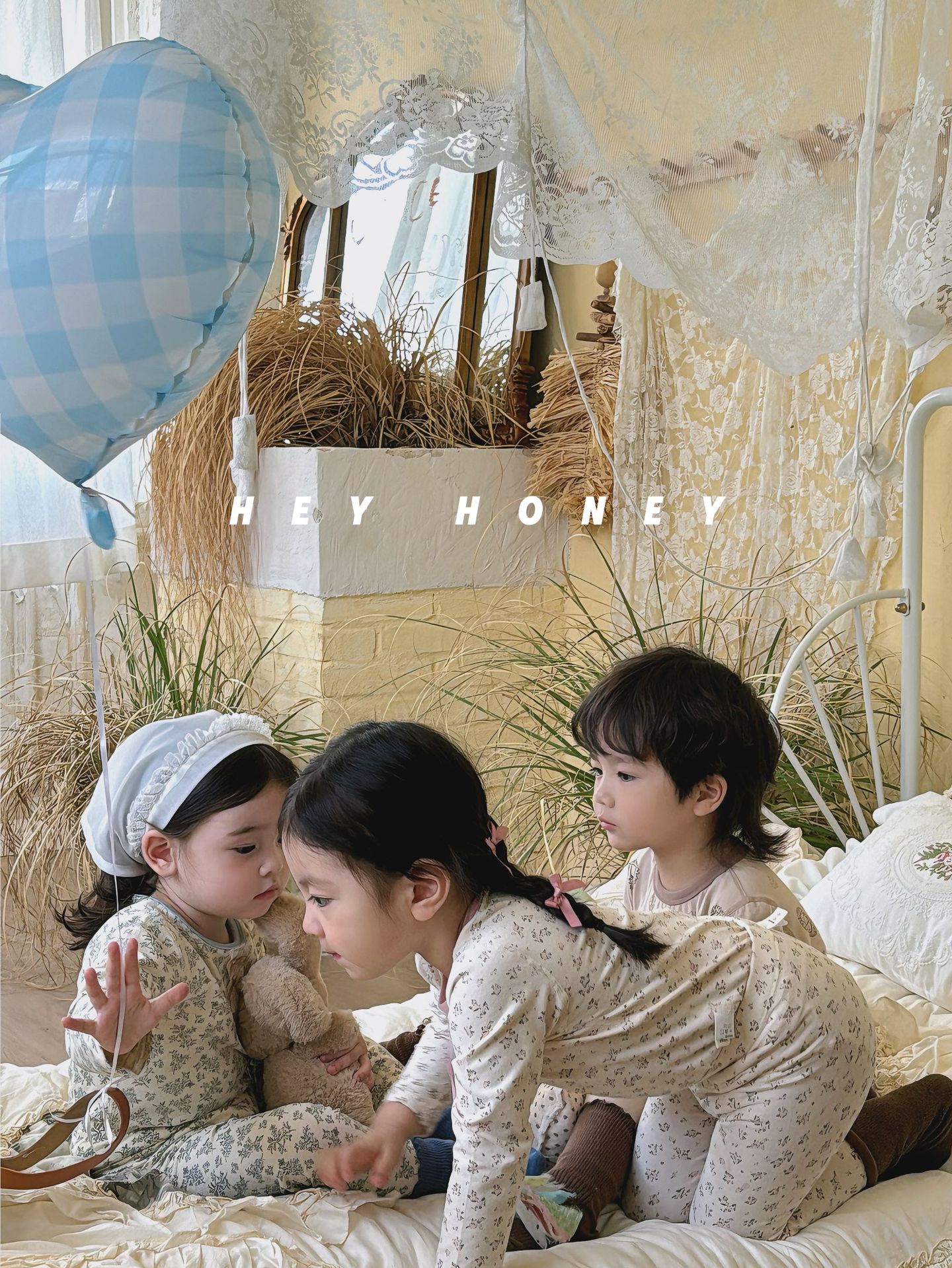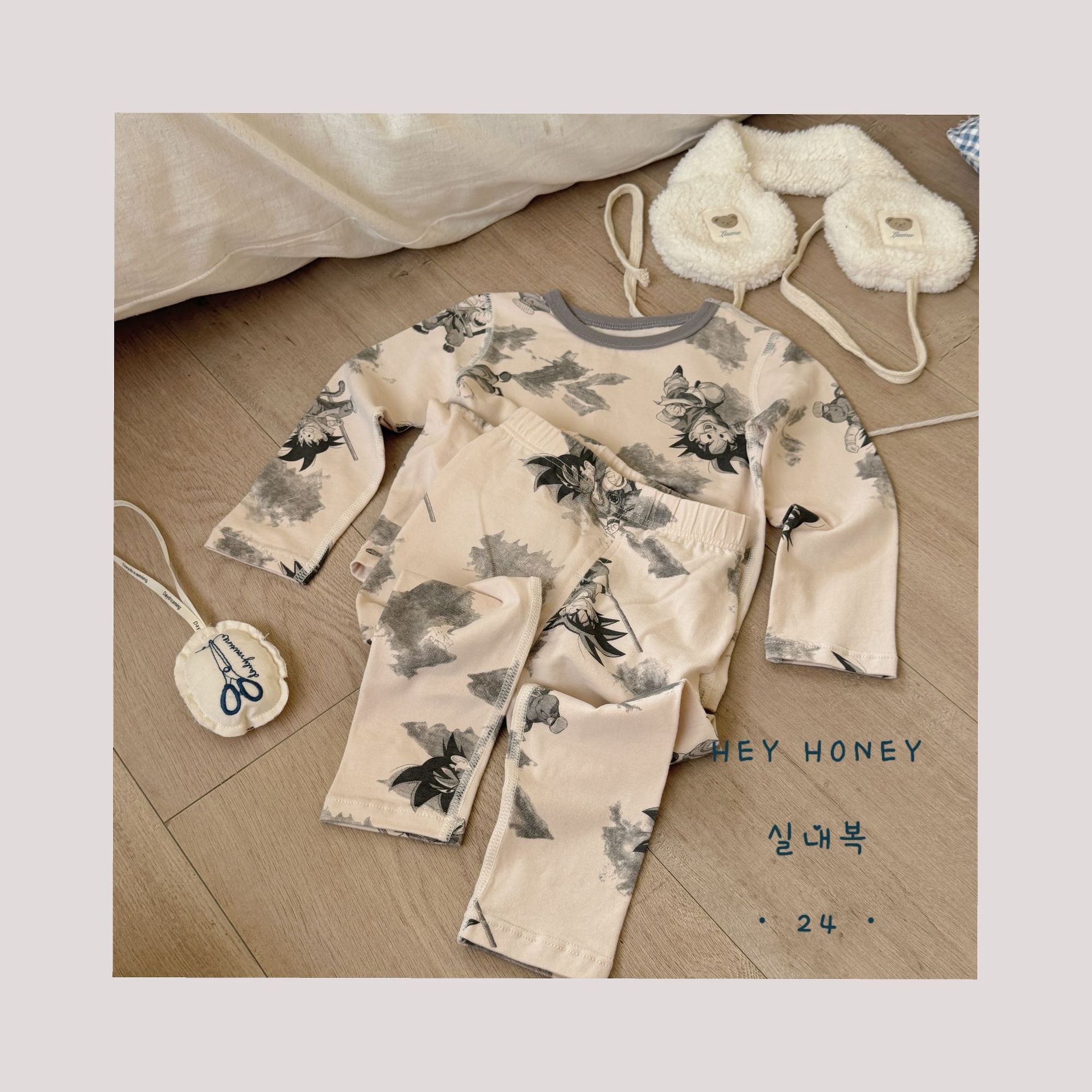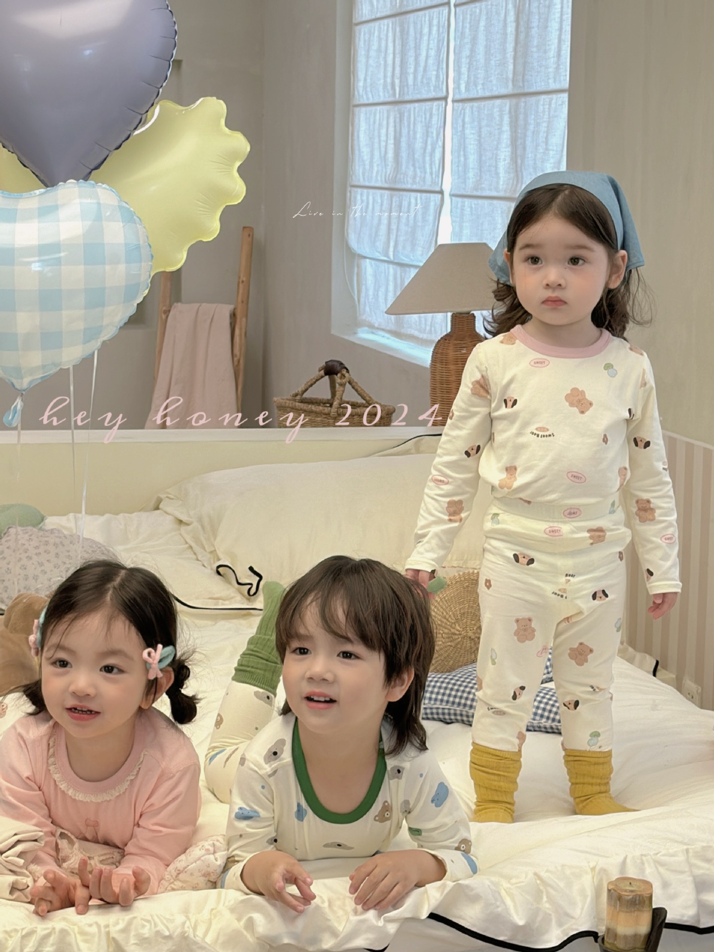 소년과 소녀를위한 크고 작은 롤 Hey honey 200 클레카 가을 옷과 긴 바지 속옷 세트 순수 코튼 잠옷스토어 가기
