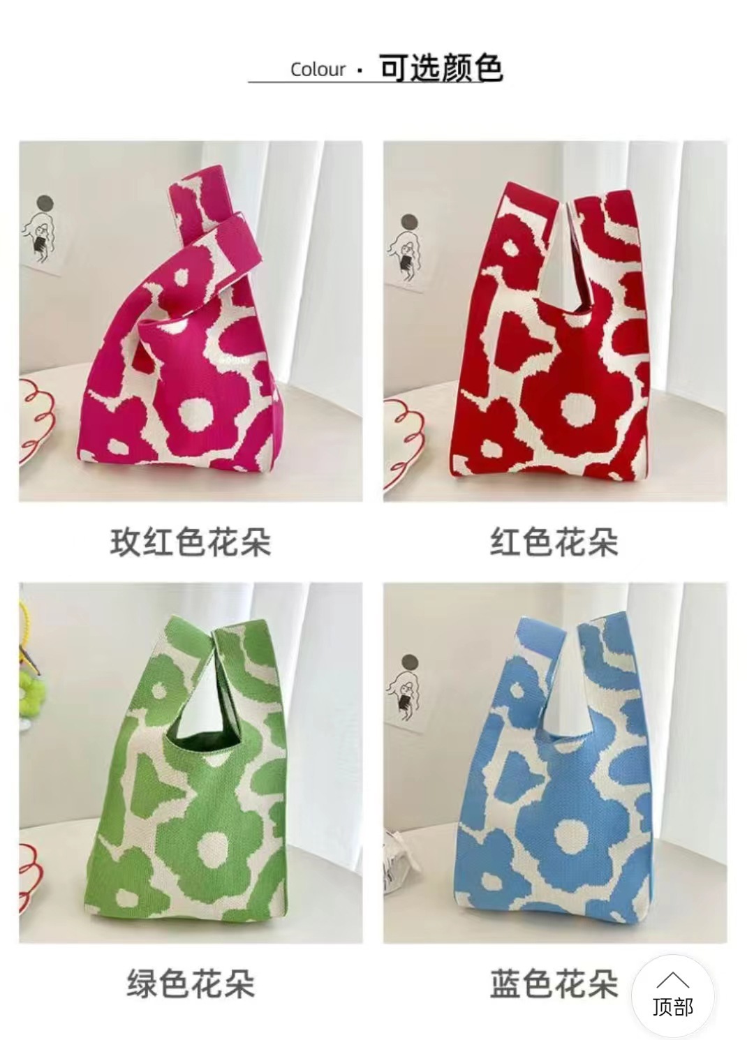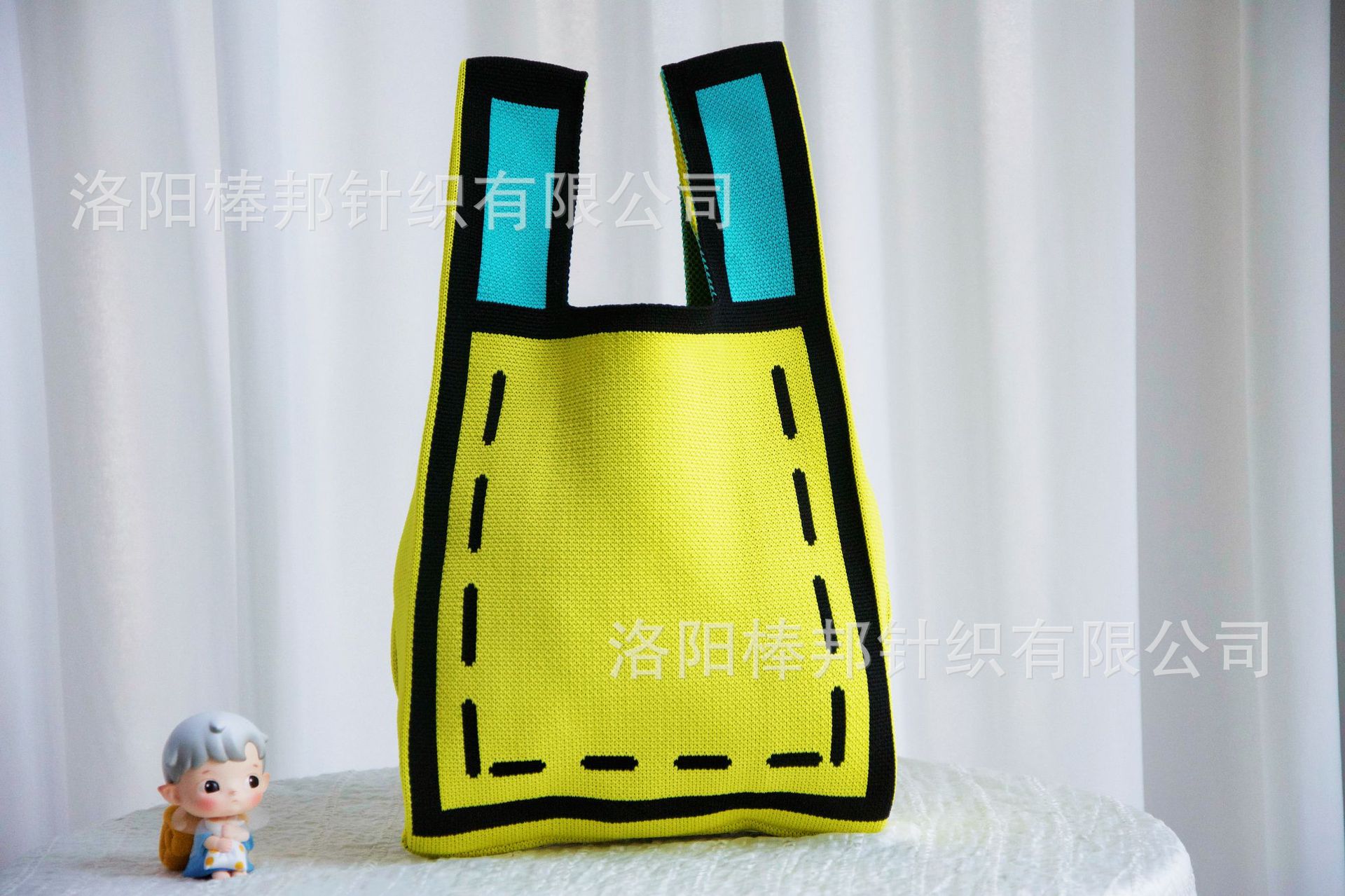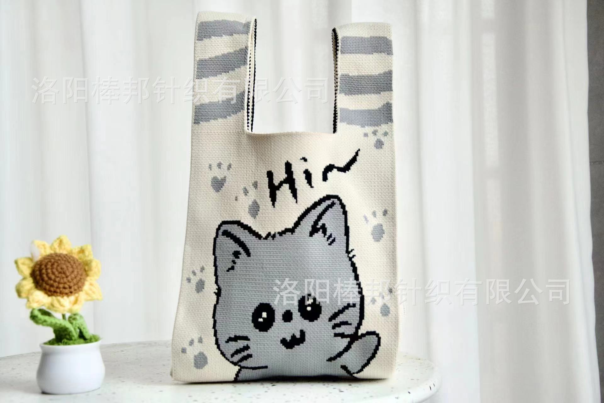 슈퍼 새로운 110g ins 여성용 토트 백 110g 니트 가방 짠 가방 기념품 중추절 팬더 만화스토어 가기