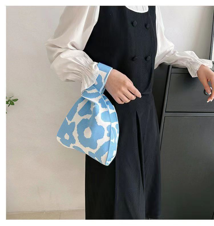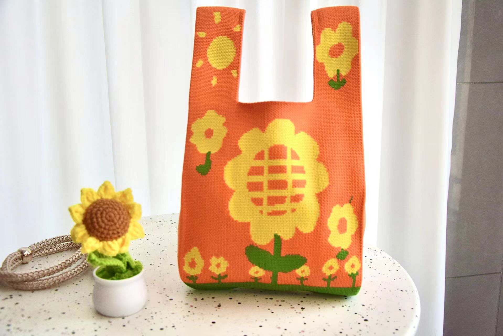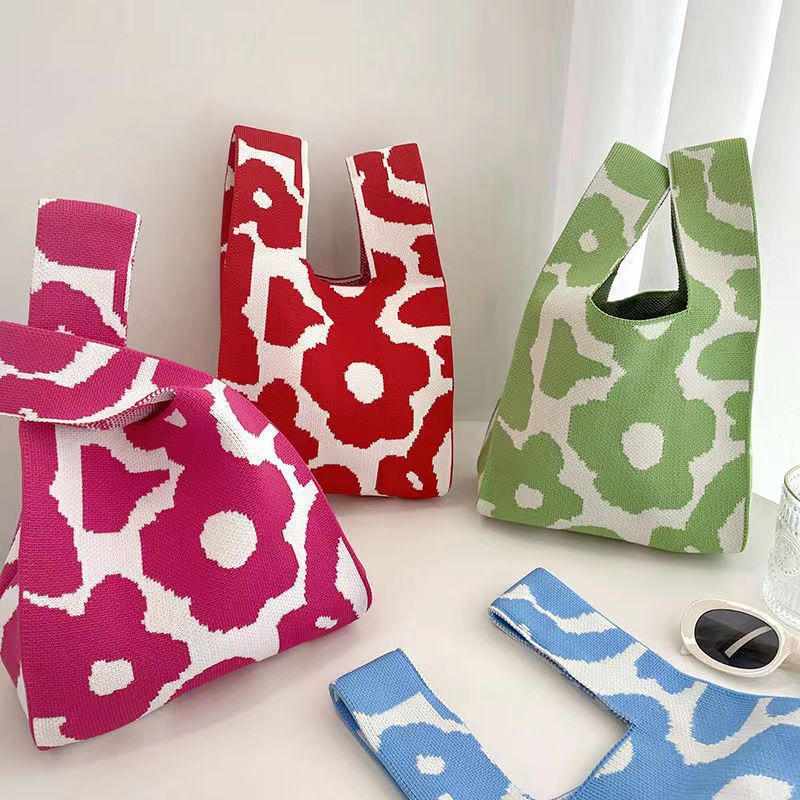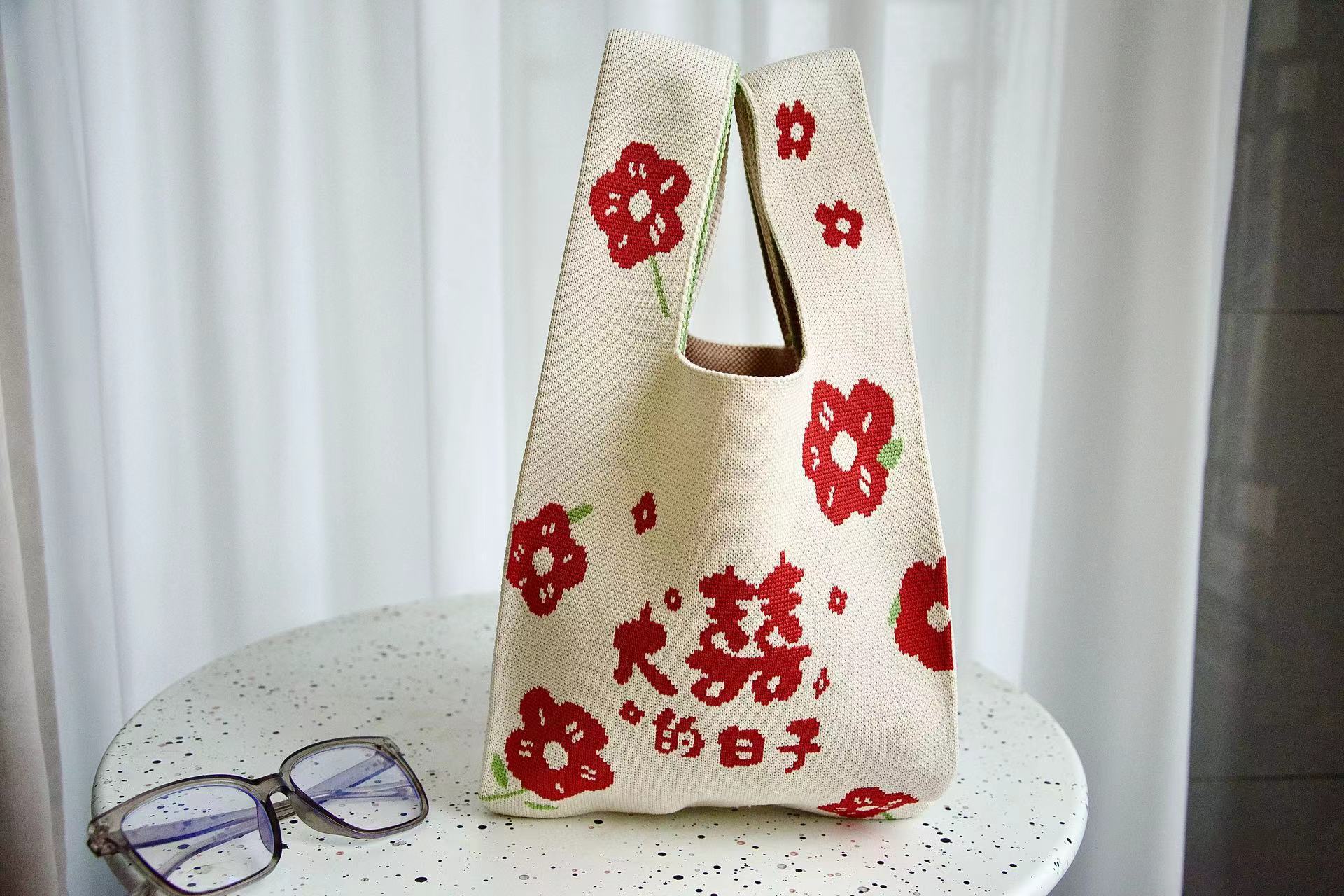 슈퍼 새로운 110g ins 여성용 토트 백 110g 니트 가방 짠 가방 기념품 중추절 팬더 만화스토어 가기