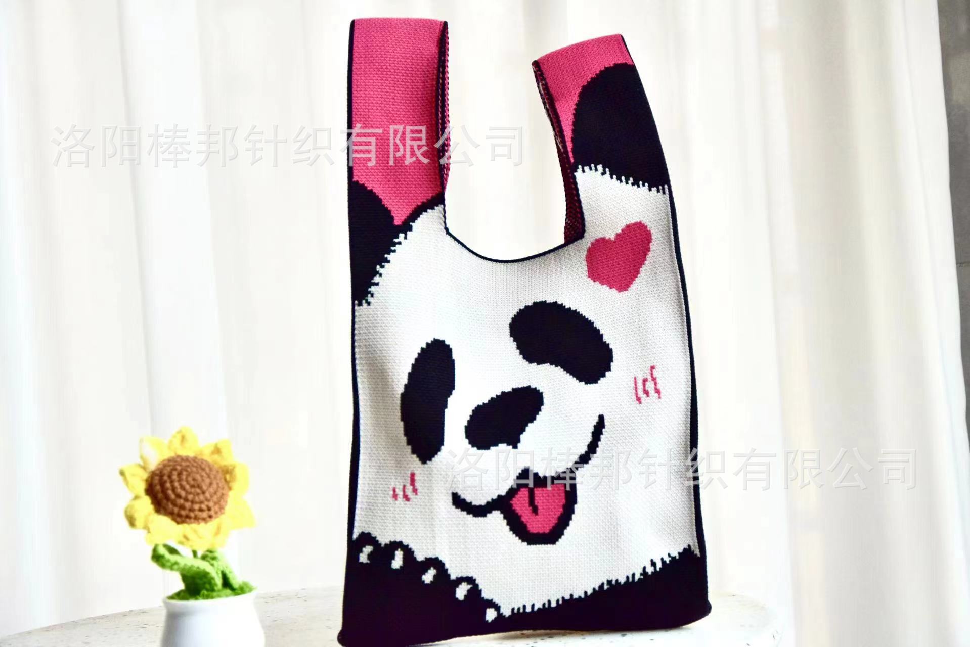 슈퍼 새로운 110g ins 여성용 토트 백 110g 니트 가방 짠 가방 기념품 중추절 팬더 만화