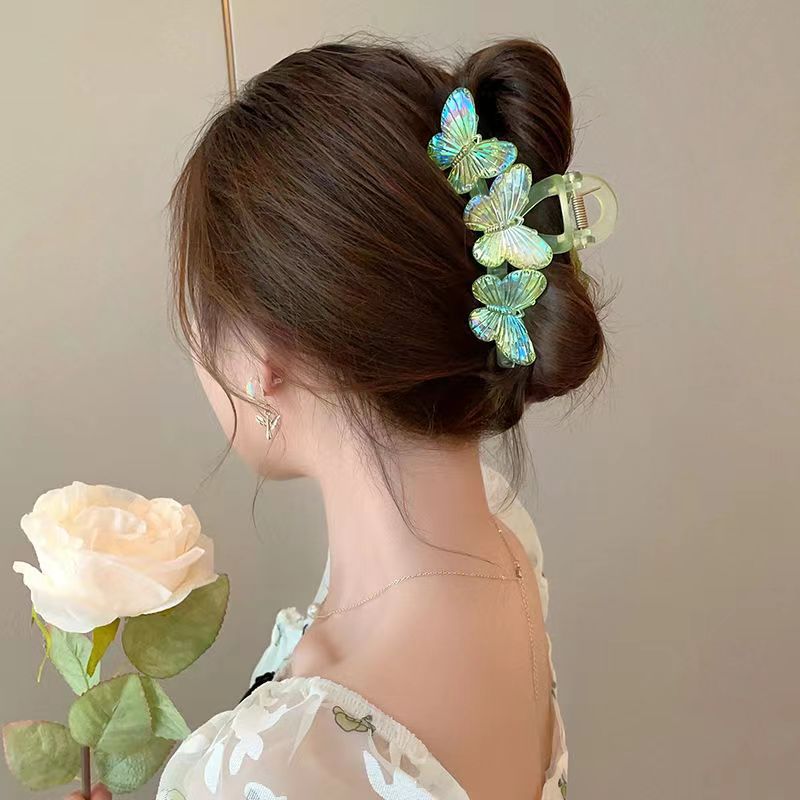 슈퍼 요정 녹색 나비 머리핀 여성 모리 스타일 개인화 된 간단한 잡아 클립 Ins 패션 트렌드 올 매치 상어 클립 액세서리