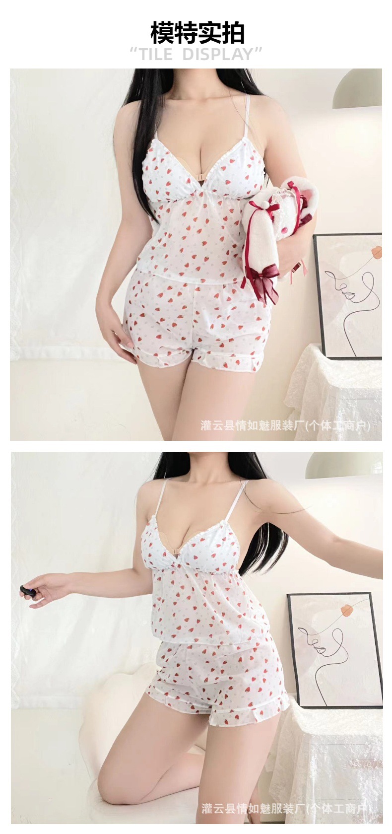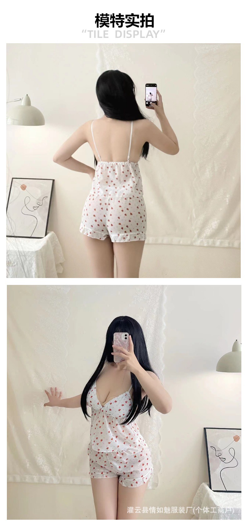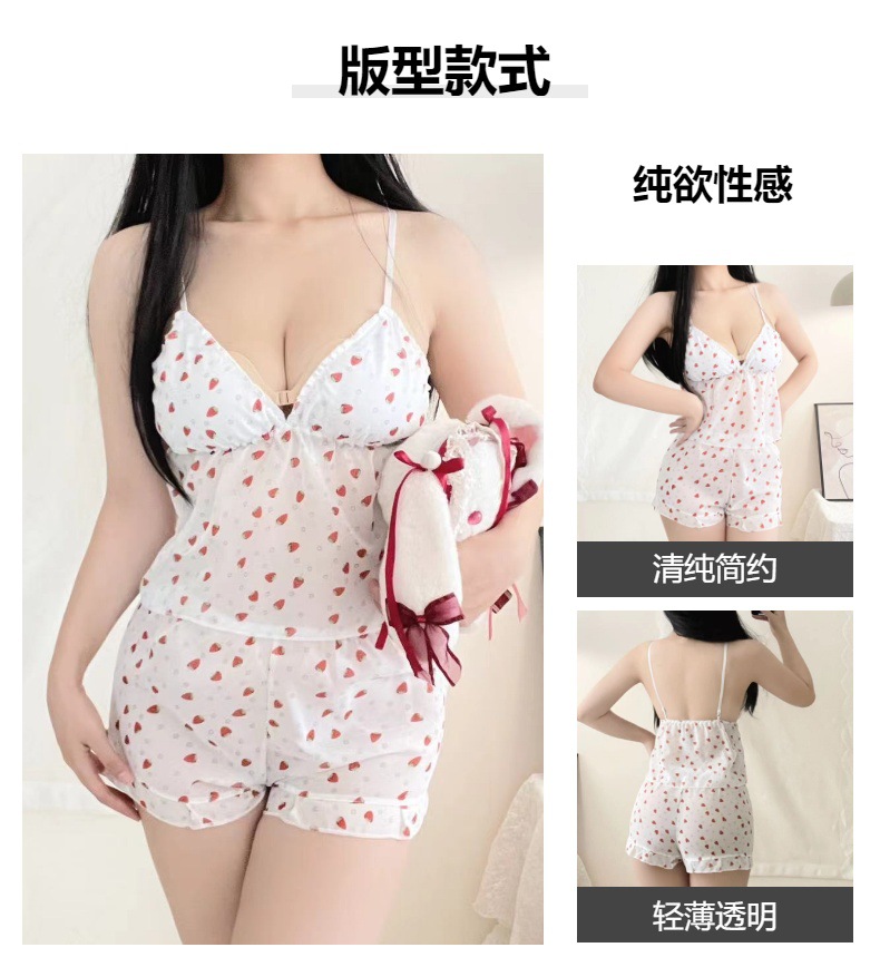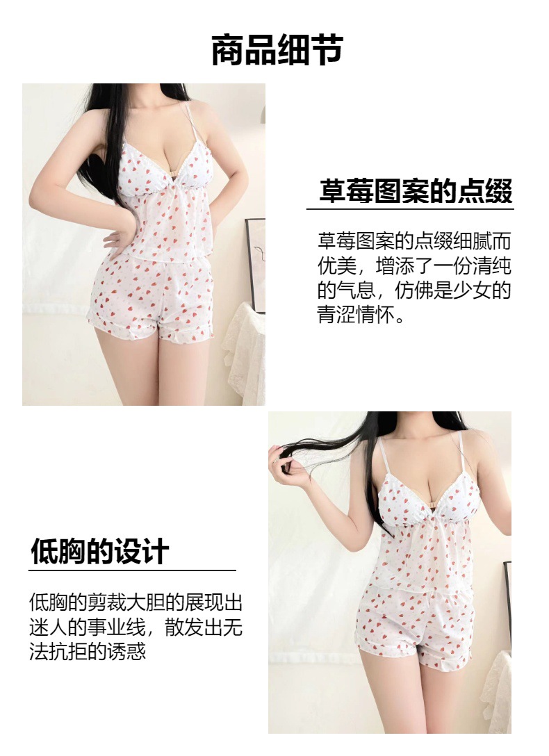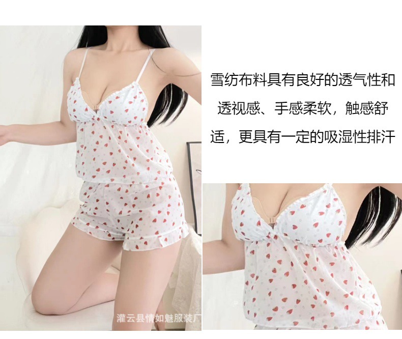 섹시한 꽃 쉬폰 멜빵 파자마 반바지 투피스 봄과 여름 달콤한 귀여운 집 옷스토어 가기