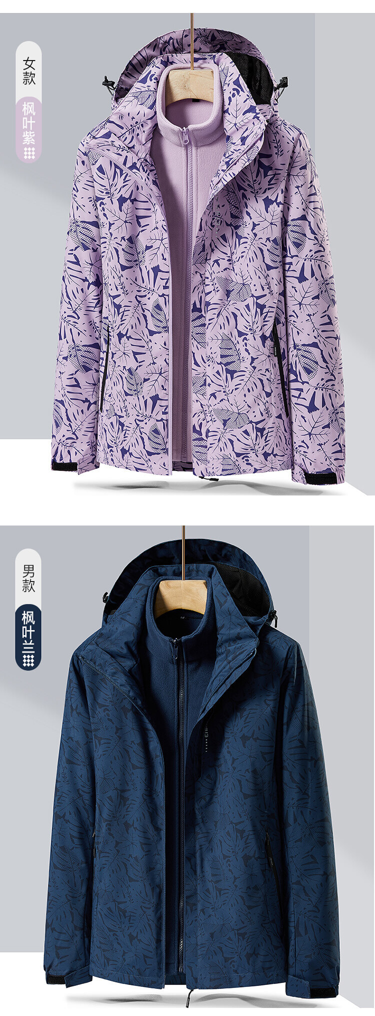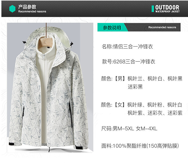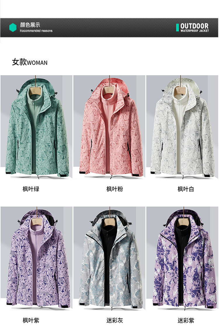 커플의 가을과 겨울 야외 3 대 1 재킷 분리 가능한 밍크 라이너 따뜻한 방풍 재킷 등산 재킷