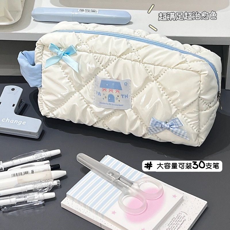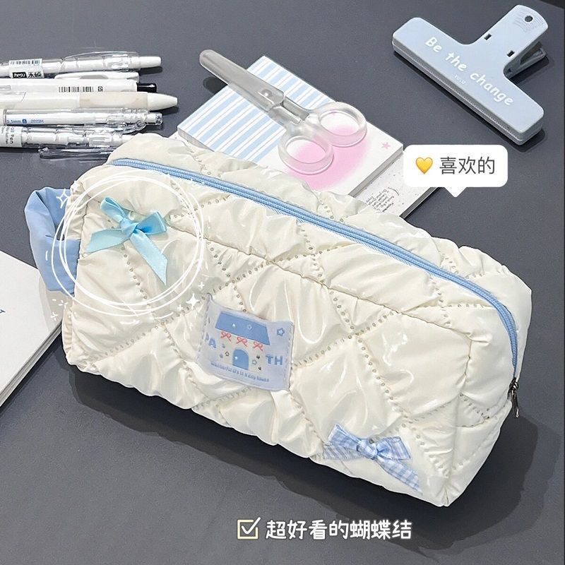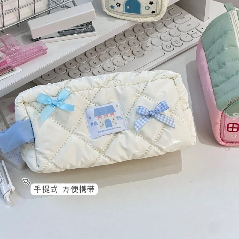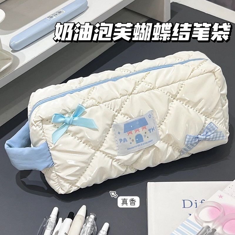 새로운 Bowknot 연필 가방 Ins 높은 가치 학생 귀여운 소녀 문구 가방 대용량 저장 가방 화장품 가방
