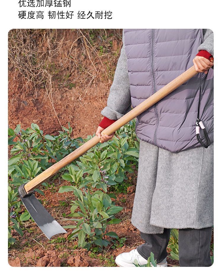 Hoe 구식 모든 강철 농업 심기 필드 나무 손잡이 갈퀴 야채 잡초 및 현장 야외 파기 및 단조 호 도구스토어 가기