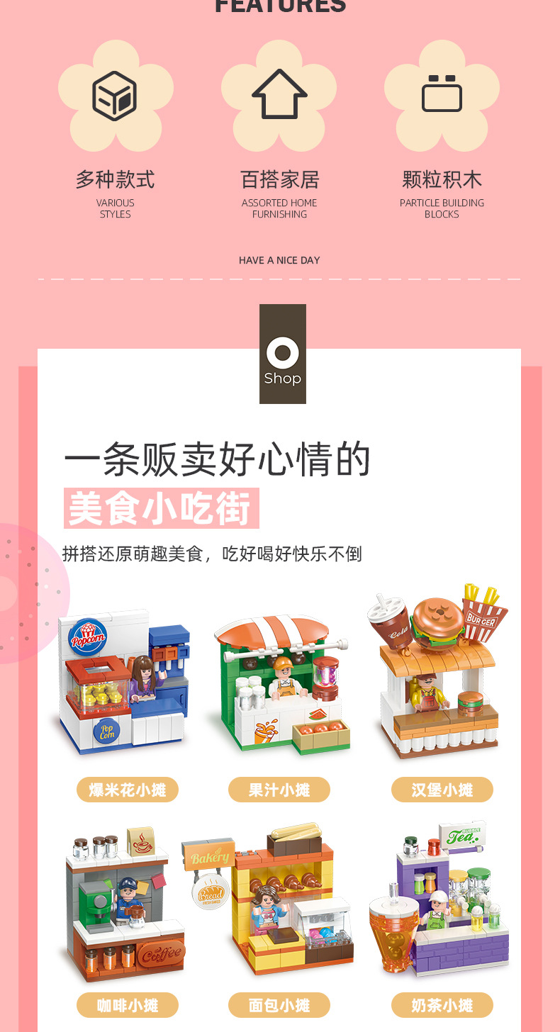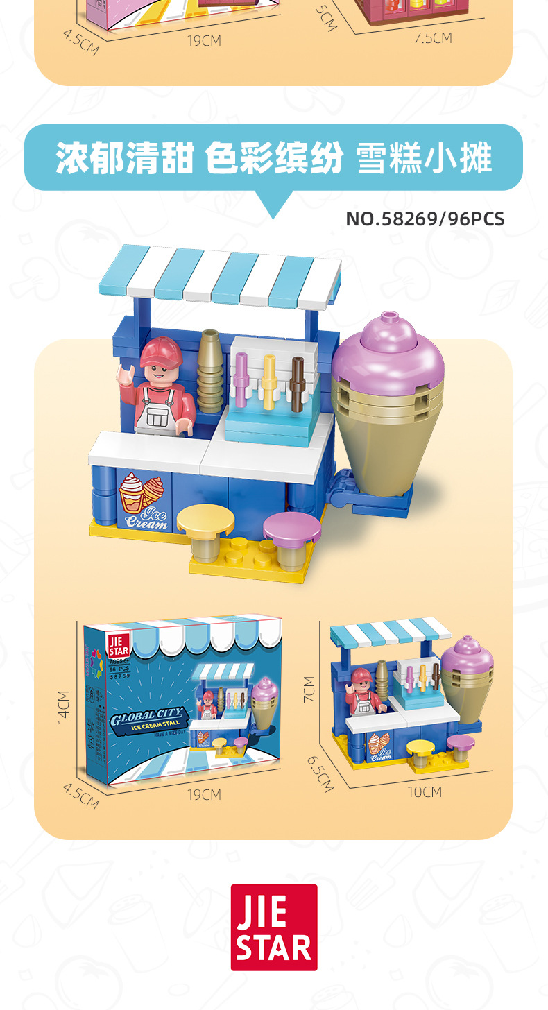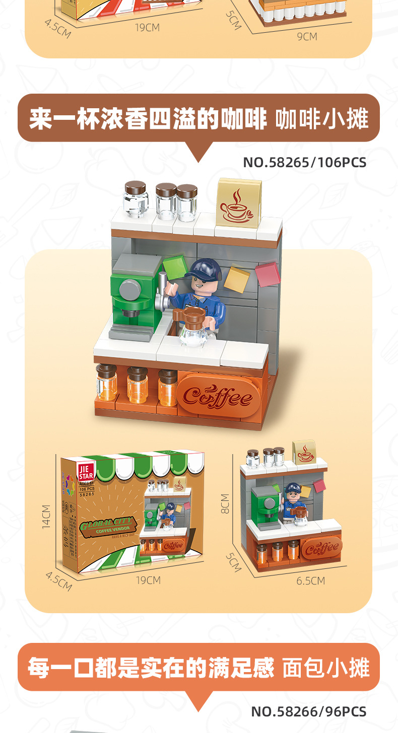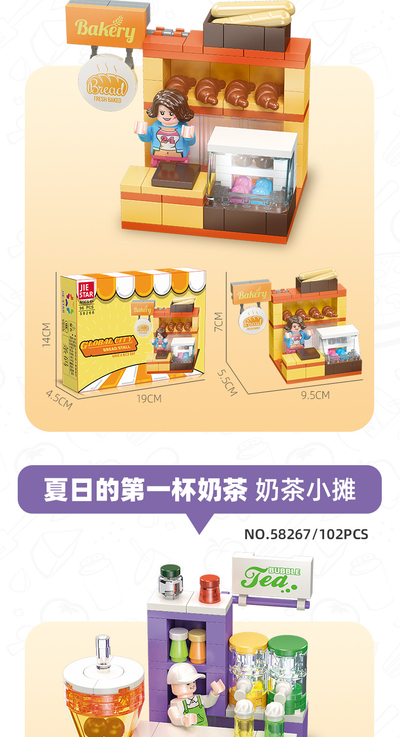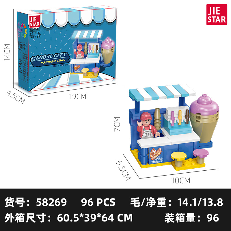 유치원 교육 지원 Jiexing 58268 플라스틱 작은 입자 DIY 조립 거리 장면 빌딩 블록 스낵 거리 장면 모델스토어 가기