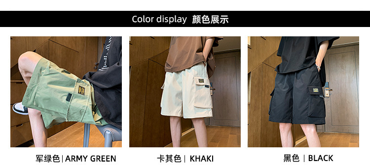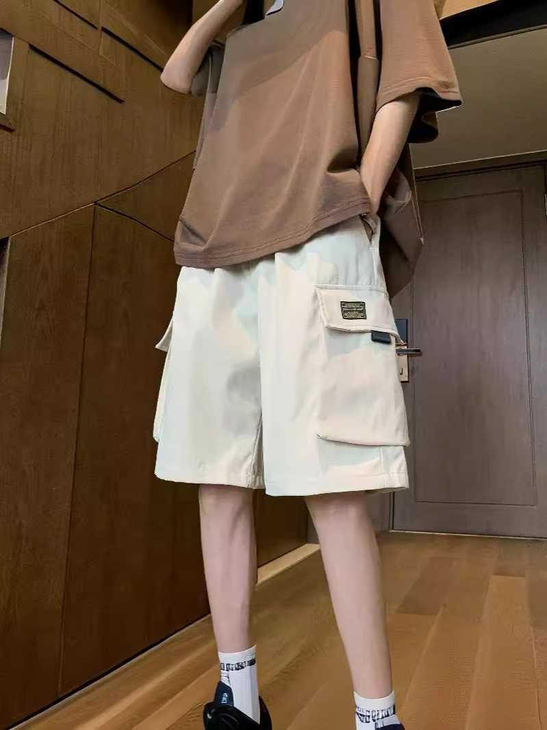 대형 포켓 작업복 반바지 남성용 여름 일본 패션 라벨 5 점 대형 바지 외부 착용 플러스 사이즈 캐주얼 바지스토어 가기