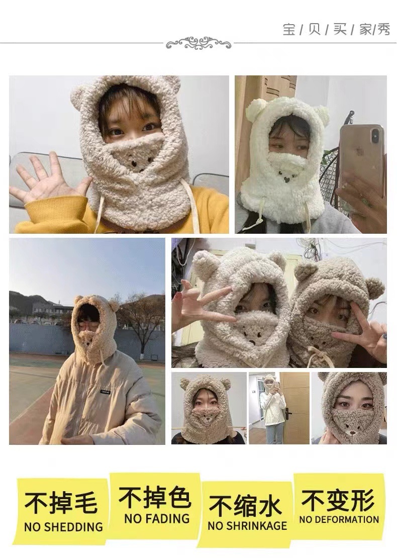 귀여운 곰 모자 어린이 가을과 겨울 한국 스타일 사이클링 방풍 따뜻한 귀 마스크 스카프 원피스 봉제 레이 펑 모자스토어 가기