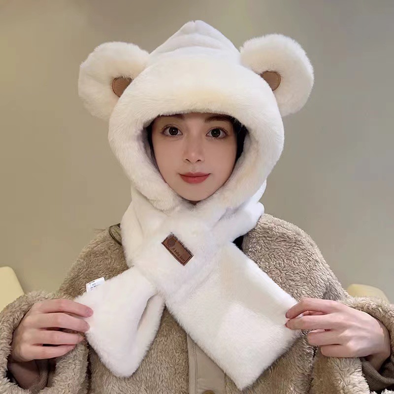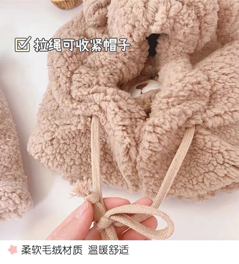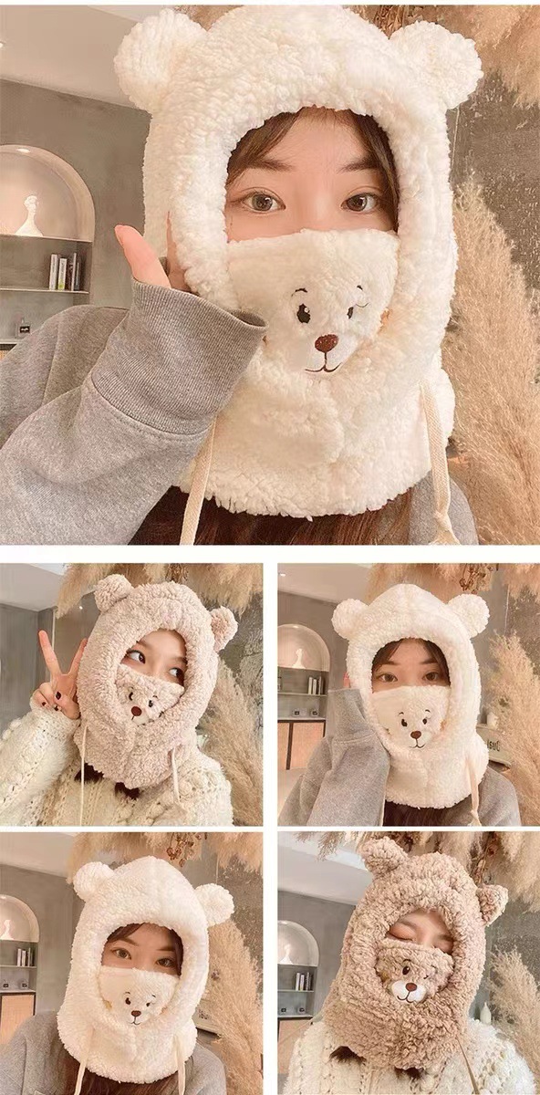 귀여운 곰 모자 어린이 가을과 겨울 한국 스타일 사이클링 방풍 따뜻한 귀 마스크 스카프 원피스 봉제 레이 펑 모자