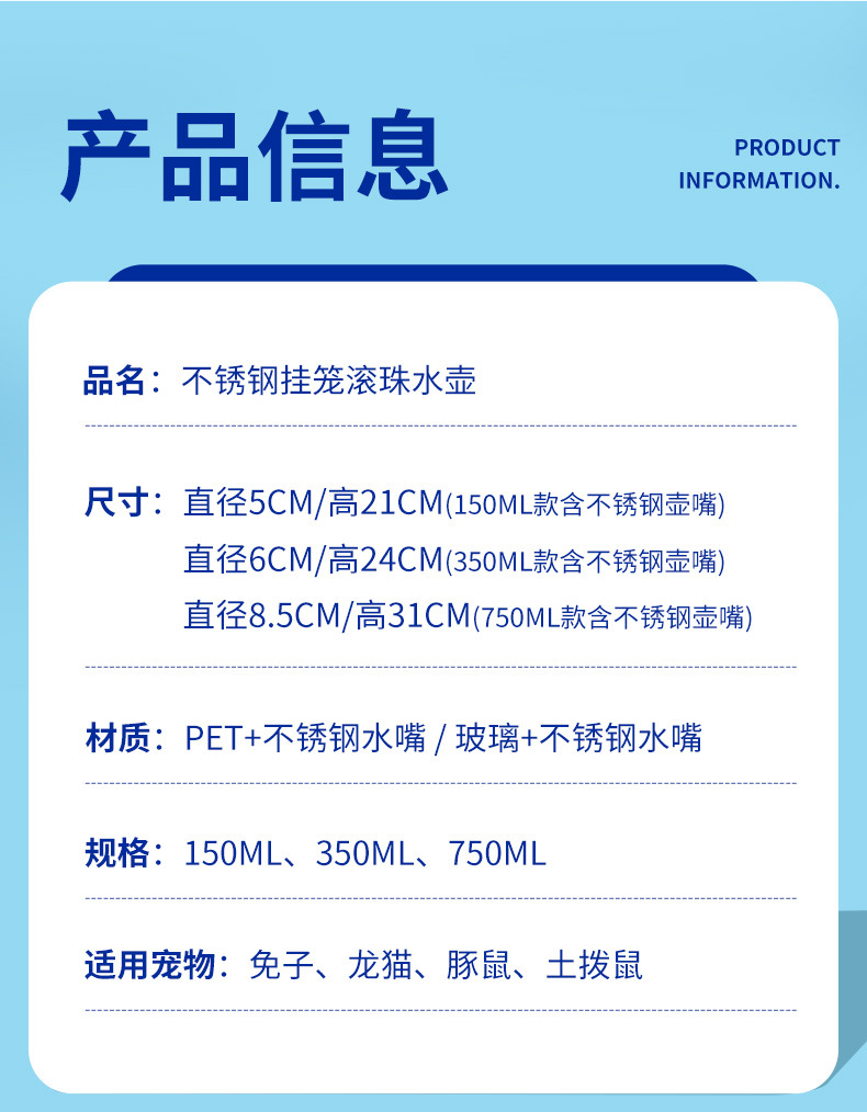 스테인레스 스틸 교수형 볼 워터 디스펜서 토끼 햄스터 친칠라 애완 동물 자동 급수 디스펜서가 새지 않습니다.스토어 가기