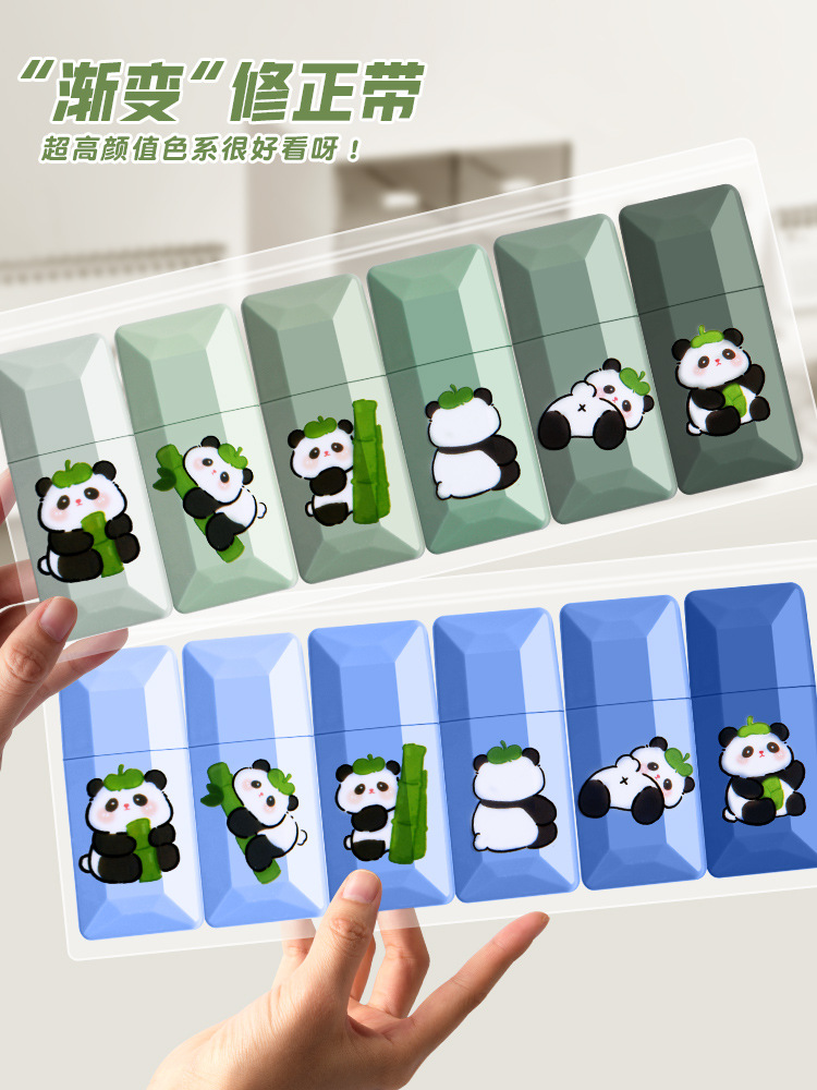 대용량 보정 테이프 팬더 그라디언트 컬러 높은 색상 가치 여성 학생 보정 테이프 대용량 연속 테이프 보정 테이프스토어 가기
