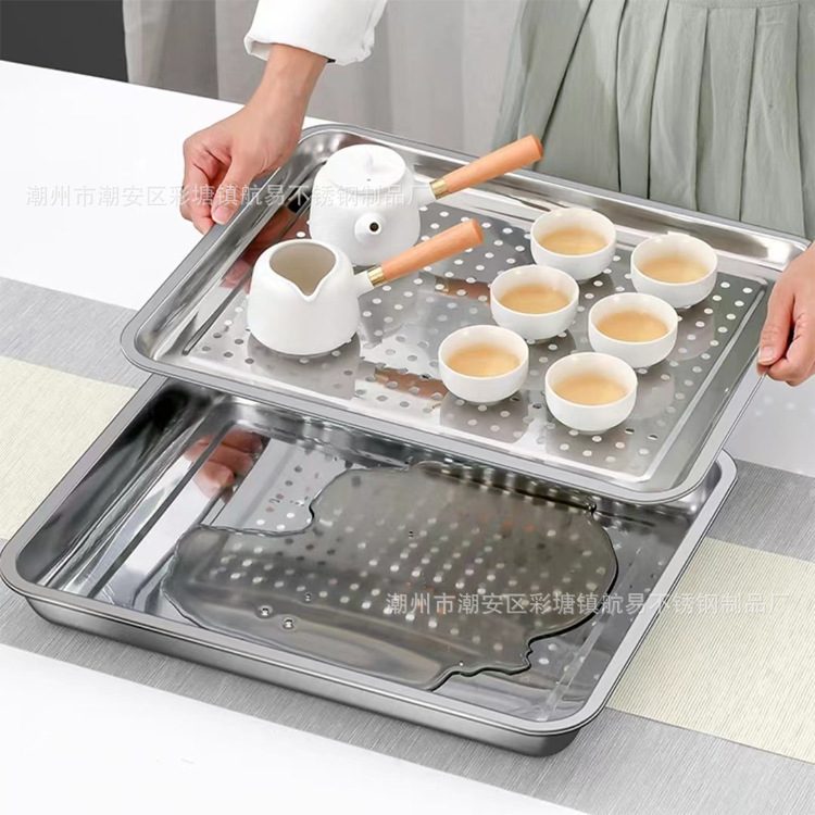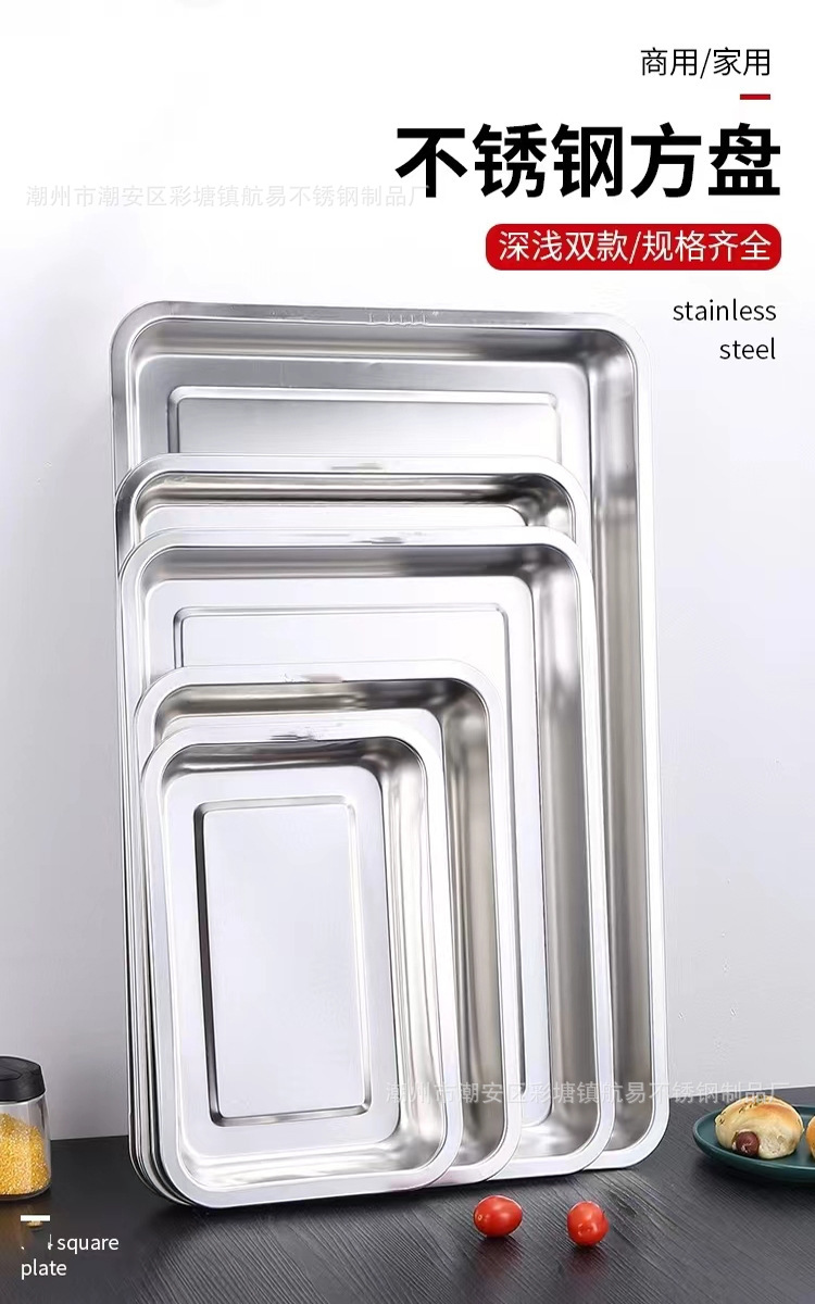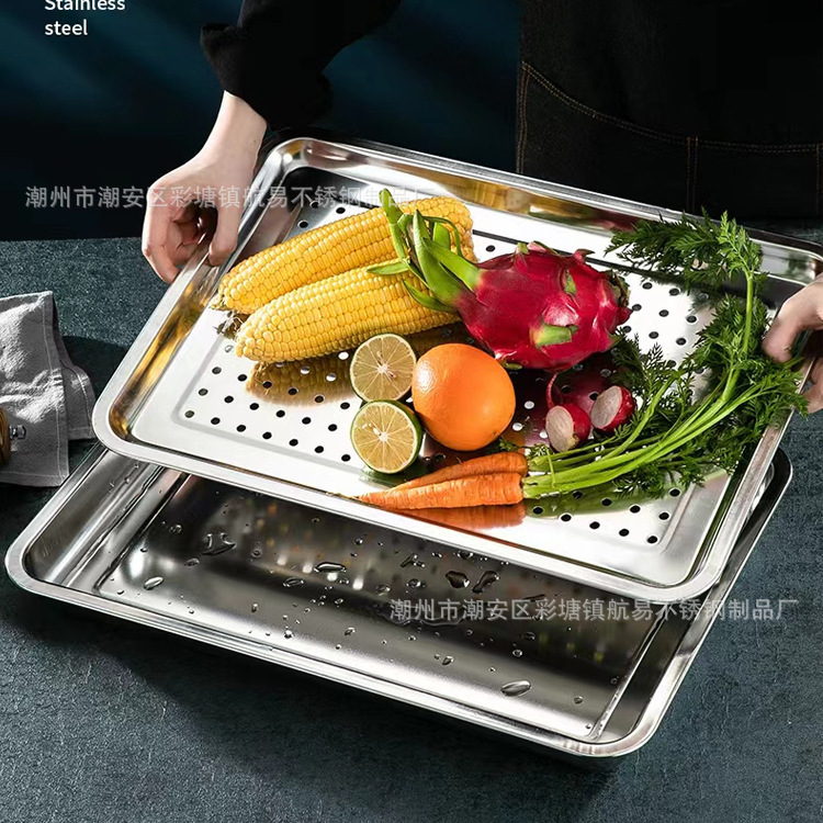다양한 사양으로 제공되는 304 스테인레스 스틸 사각 접시, 구멍이 뚫린 사각 접시, 찜밥, 다기능 깊고 두꺼운 직사각형 트레이스토어 가기