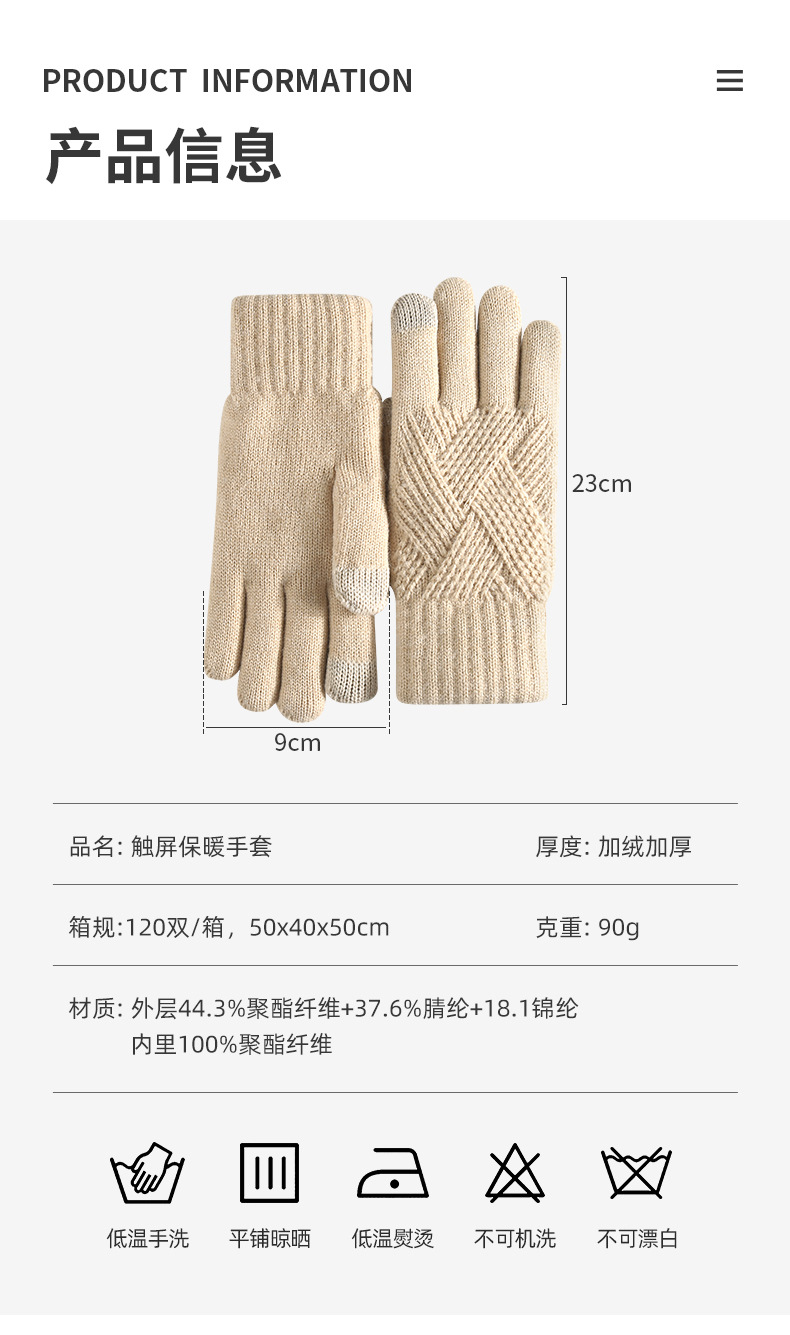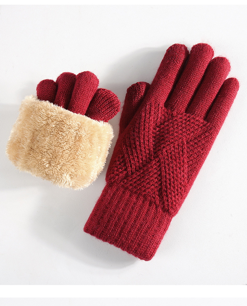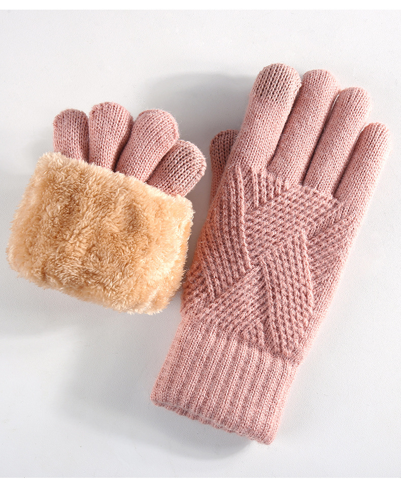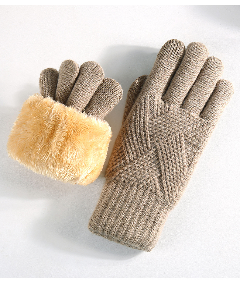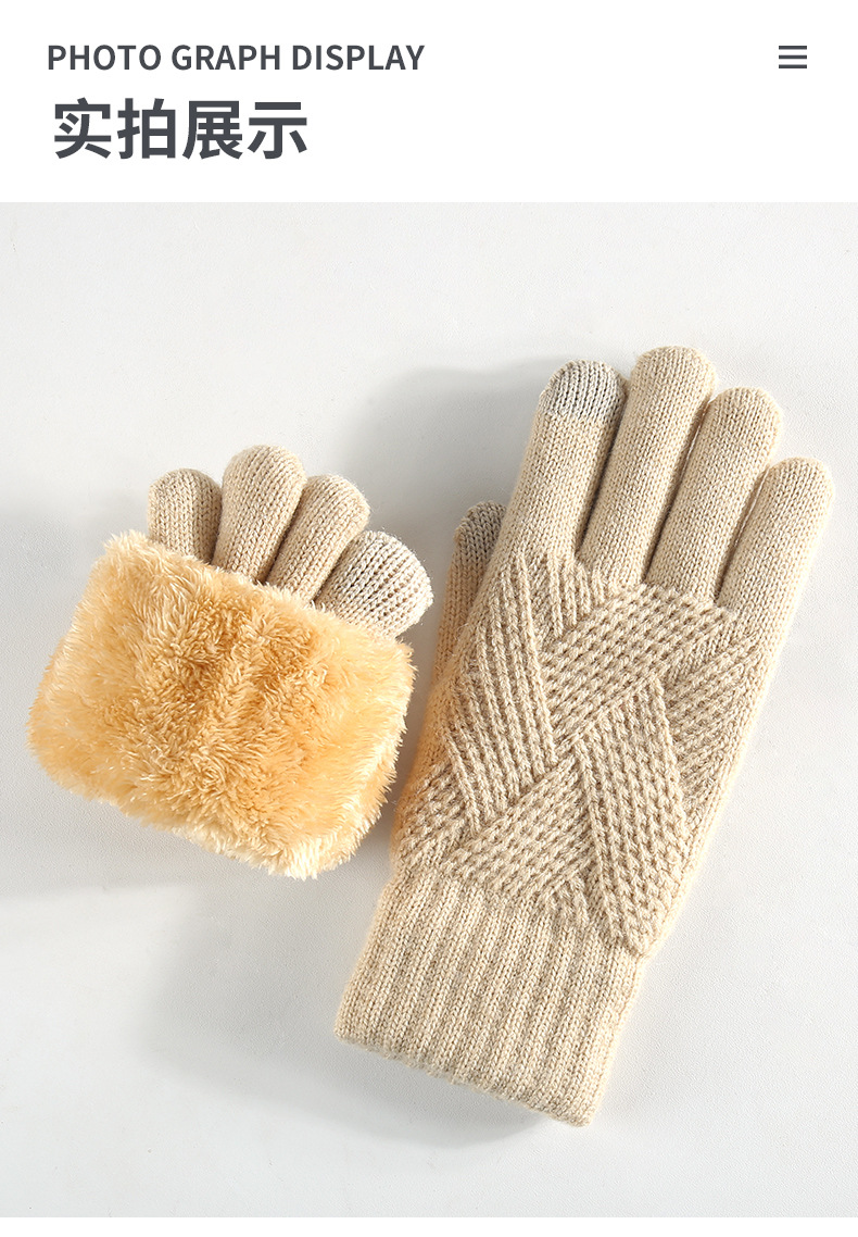 국경을 넘는 새로운 니트 장갑 남성과 여성의 겨울 더블 레이어 기모 두꺼운 야외 승마 따뜻한 솔리드 컬러 터치 스크린 장갑스토어 가기